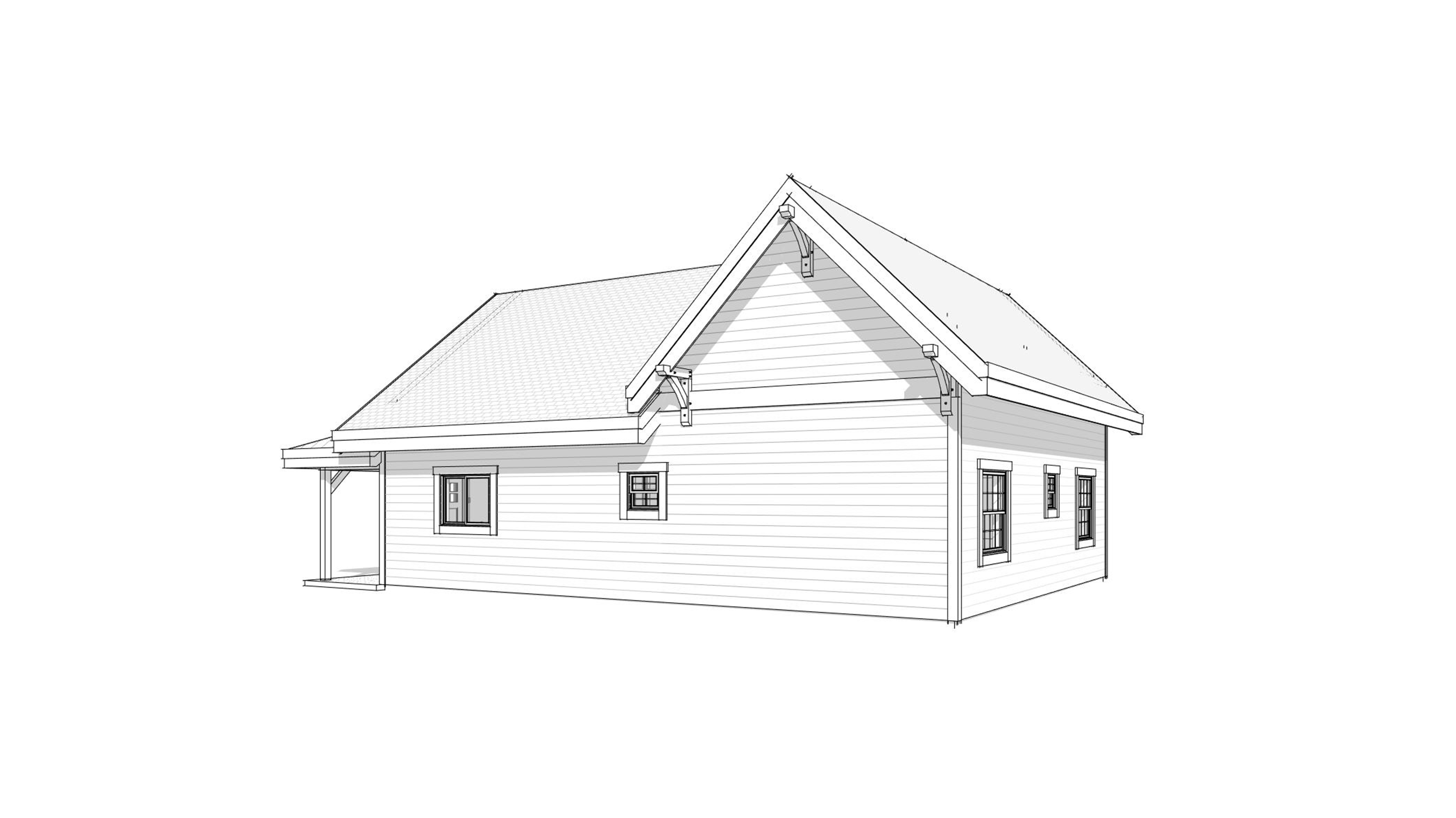 clean rustic cabin architectural exterior home rendered in cinematic vibrant daytime lighting with blue skies and sparse clouds in the sky warm glow and reflections off of the windows select grade wood cedar siding green manicured landscape around structure with hedges and gardens and patches of grass small concrete patio in the foreground with patio furniture and a fire pit with a river front in the foreground as well black standing seam metal roof prominent cinematic big fir trees behind the house in the background high fidelity photorealistic visualization crisp shadow falloff refined facade geometry soft atmospheric depth premium architectural photography mood ultra clean composition and materials dark trim around windows