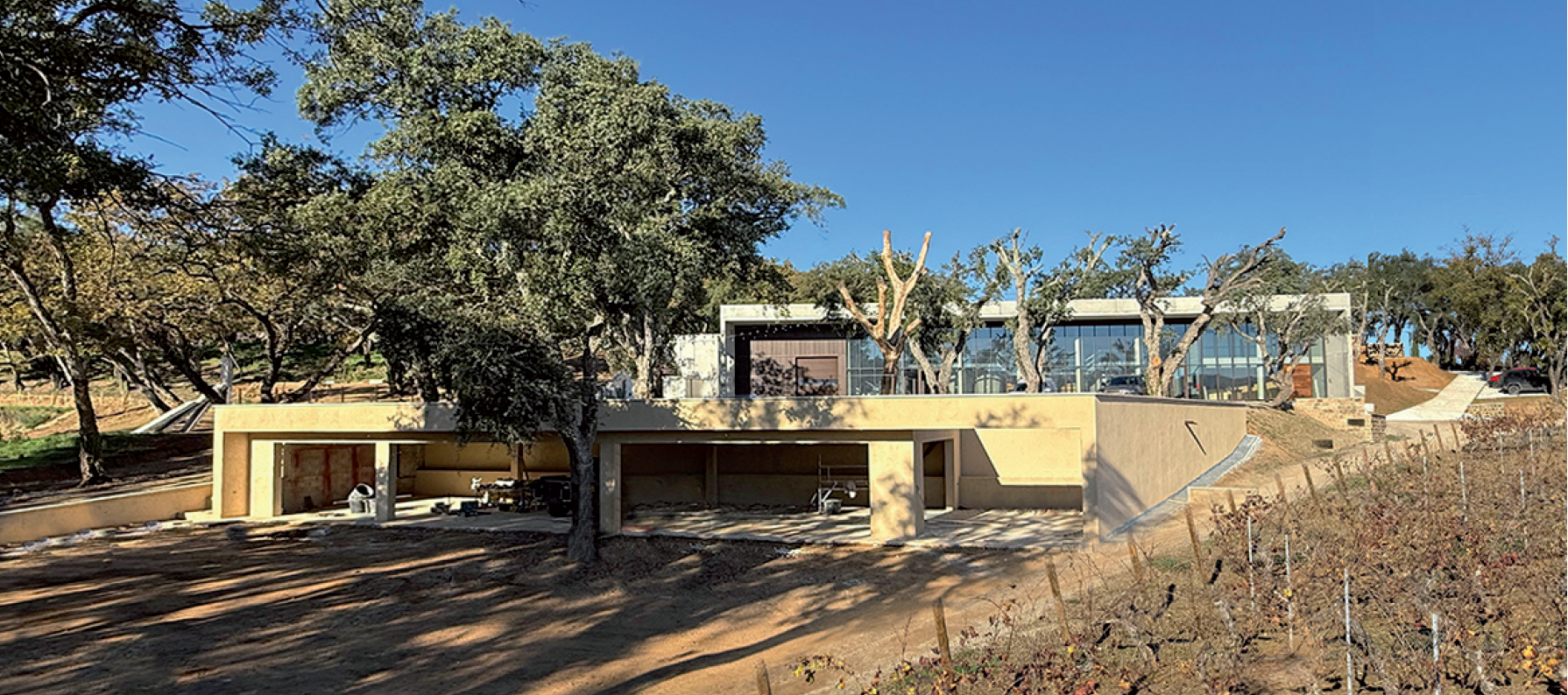 ajouter des feuilles aux pieds de vigne mettre des grand volets bois sur les baies vitr es l tage ajouter des feuilles et branches sur les ch nes devant les baies au niveau bas de la construction mettre des baies vitr es mettre du gazon devant les baies vitr es