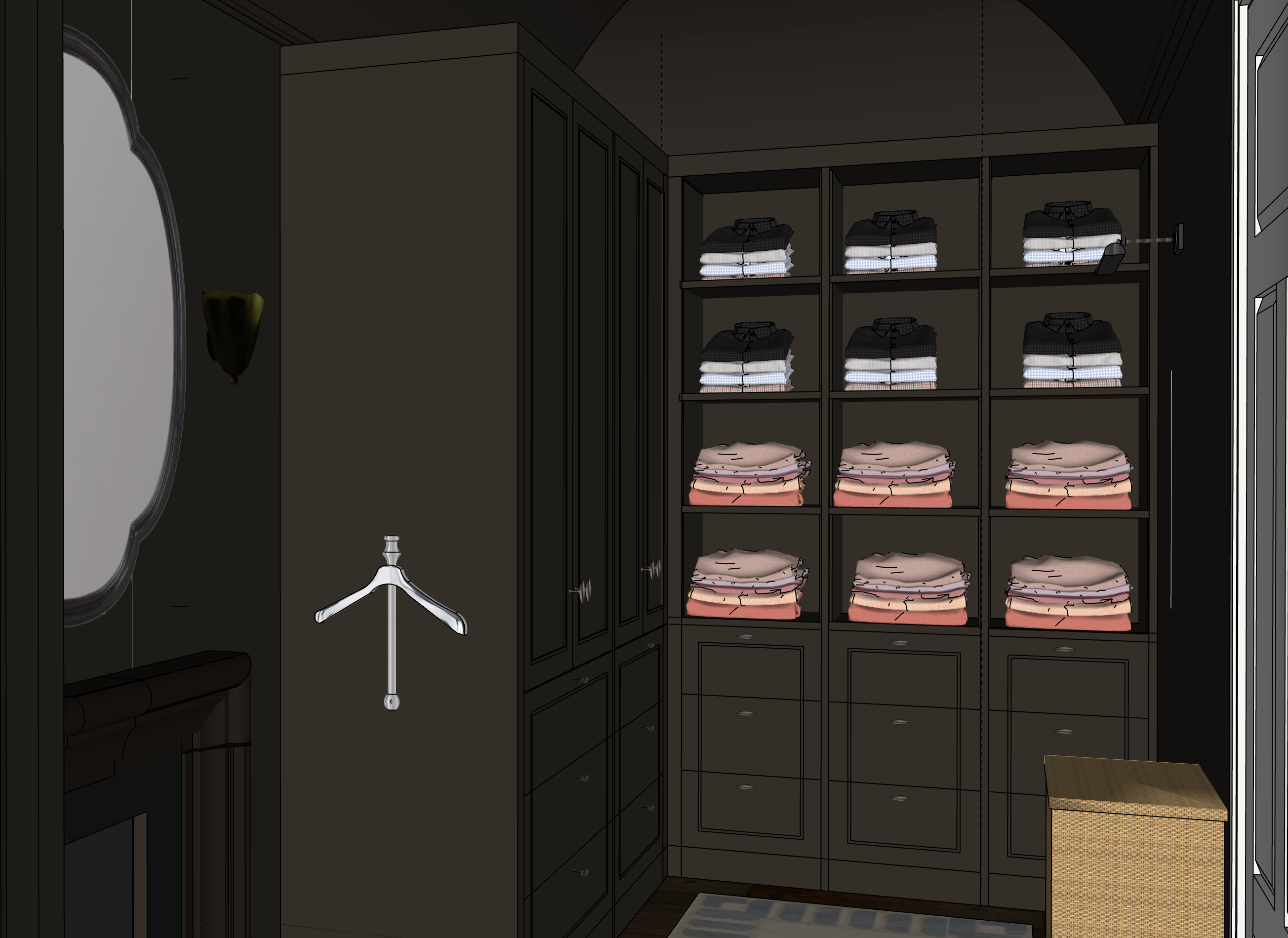 moody photographic interior lighting with natural falloff soft shadow gradients controlled contrast realistic exposure painted walls with subtle surface texture cabinetry with refined finish and gentle light response