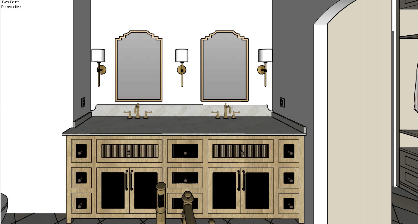 make doors look like the rest of the drawers make doors inside the shaker fluted like the rest of the drawers make the tub filler brushed gold make the handles on the vanity honey bronze