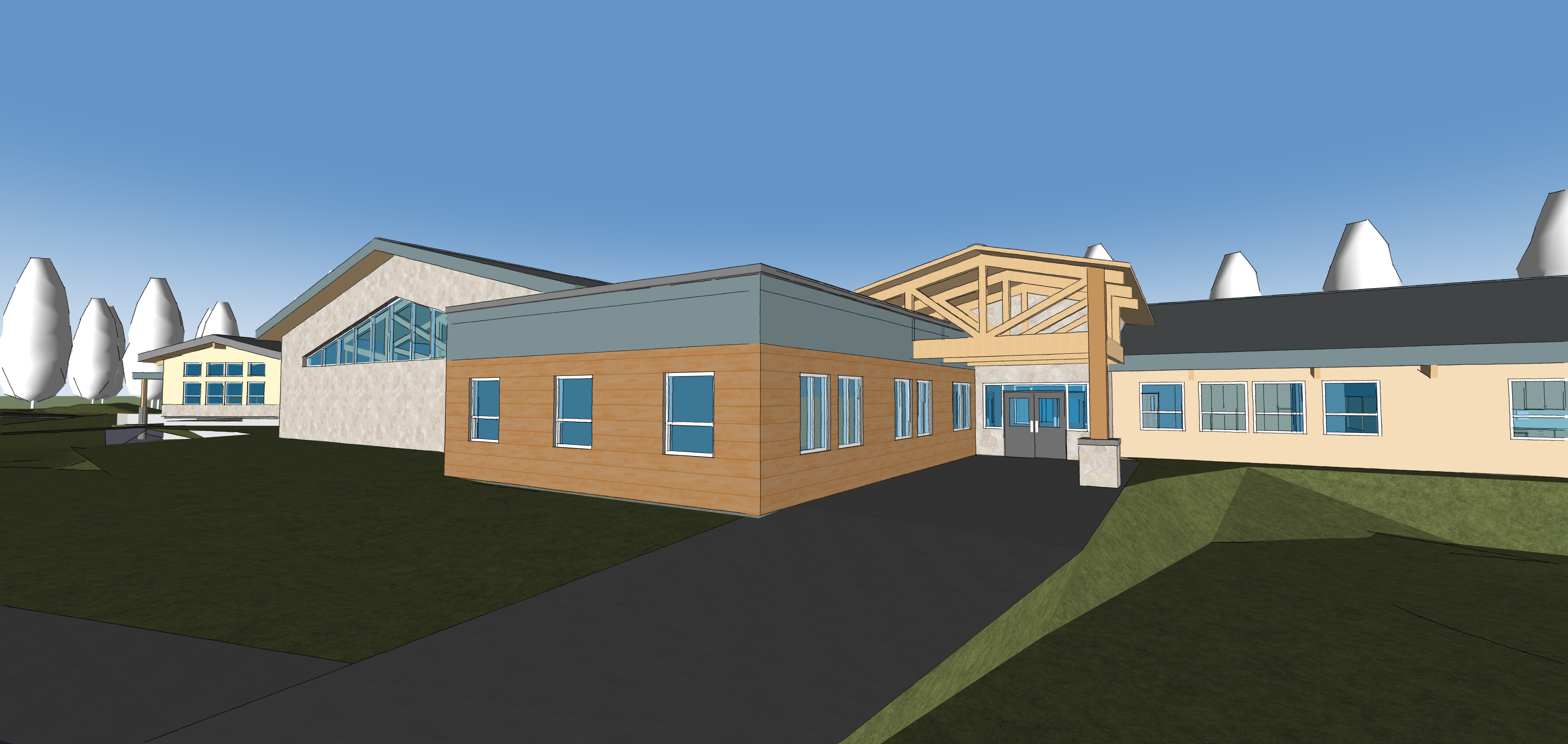 exterior shot metal roof alaska landscape composite cladding waldorf school architecture
