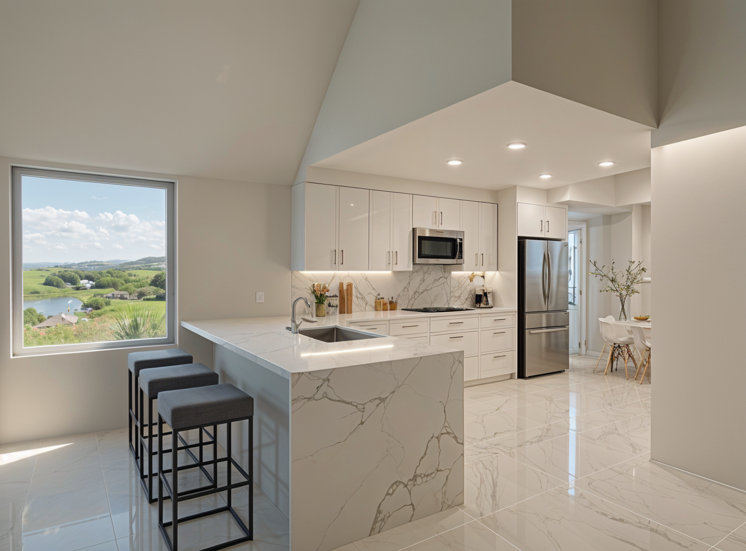 modernist interior shot improve the lighting make it look more photorealistic architecture