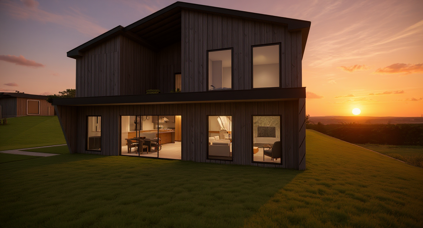 this is an existing modern ranch style home located at 3712 e pasadena ave phoenix az 85018 the garage on the left is a new addition and will have light gray stucco with a sand texture there is a low wall to the right of the garage which wraps around a courtyard and has arcadia patio doors behind it white paint the main building has river rock stone wainscot with board and batten siding above the river rock white all the windows are white with true divided lights the front entry door is black the existing wall under the gable roof on the right will have matching light gray stucco sand texture keep this image but change the single garage door to two independent garage doors the courtyard wall has a square corner not round change the board and batten in the gable on the right back to stucco the gable on the right side of the elevation is all stucco no board batten sideing above windows remove the river rock from the garage on the left