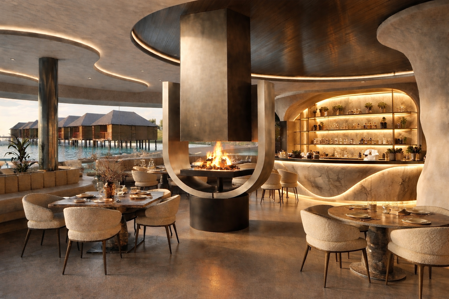 make the fixed seating look more comfortable and add seating opposite