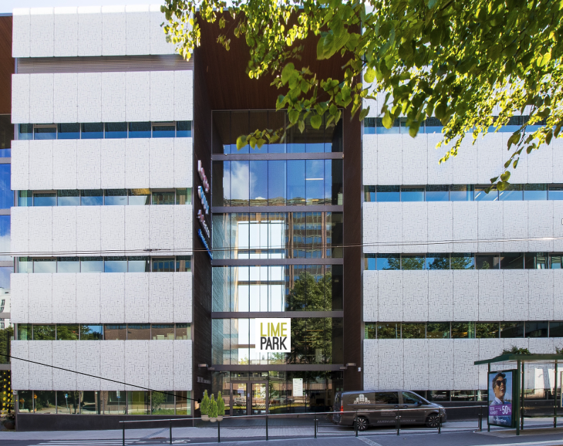 exterior shot limepark light sign behind the window add bushes on left side