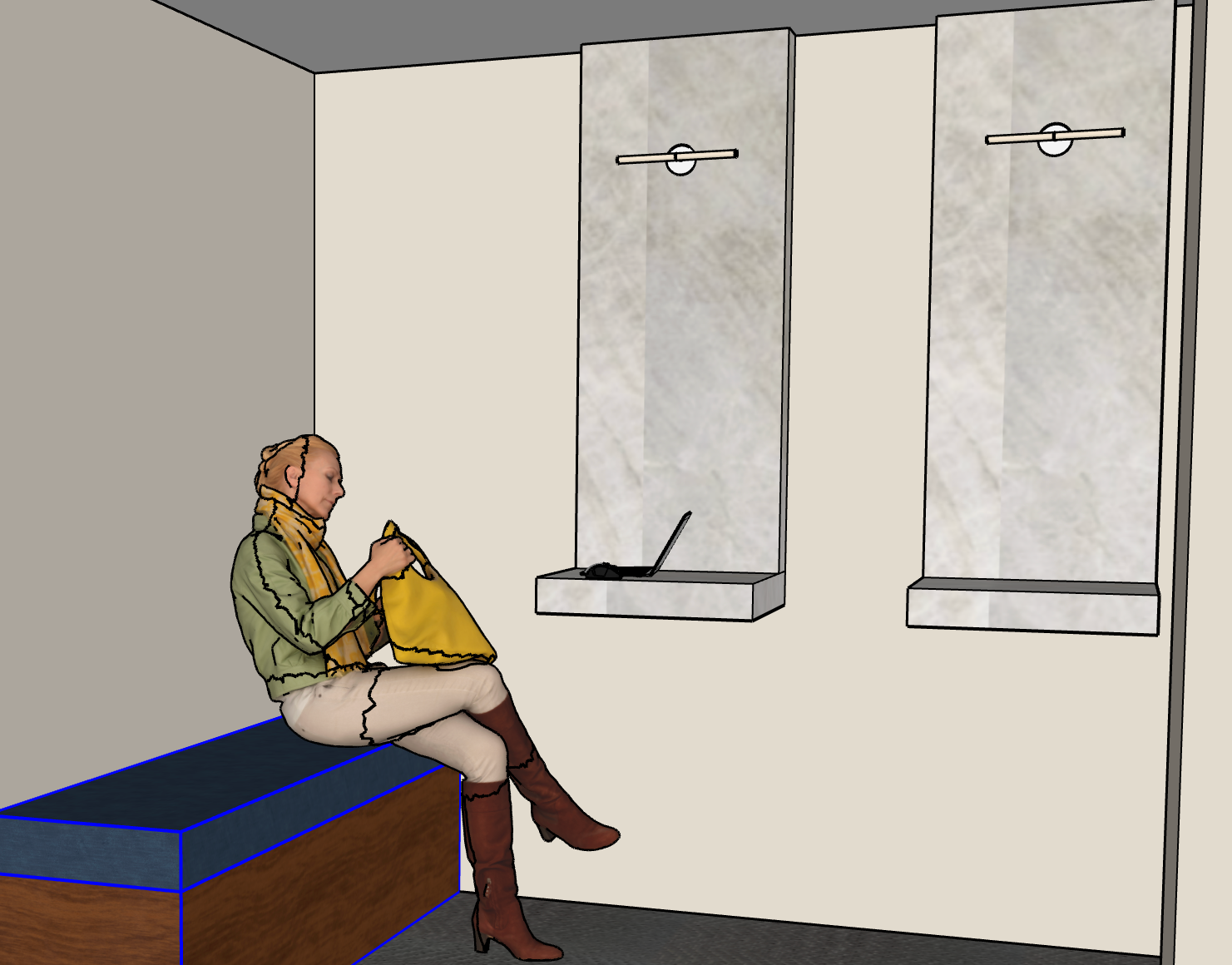 interior of a modern reception area with elegant wooden desks featuring a rich walnut finish and a sleek granite base a tall lush green palm stands in the corner adding a touch of nature the walls are covered in a soft cream colored marble exuding sophistication a person stands beside the desk in a smart tailored charcoal suit with a red tie deep in thought the atmosphere is professional and contemplative with soft natural lighting casting subtle shadows