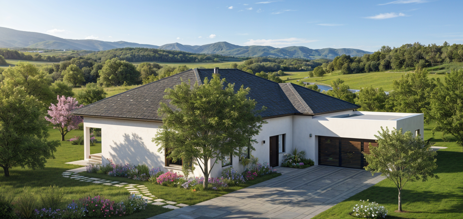 make look realistic use natural lighting make day time add landscaping with plants shrubs flowers and surrounding trees add a nice path to both doors