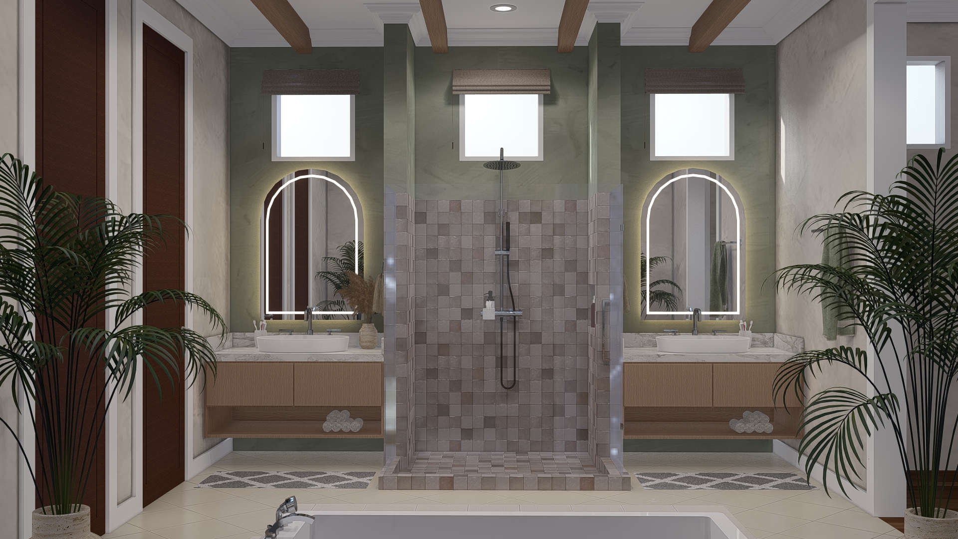 with glass partition in shower