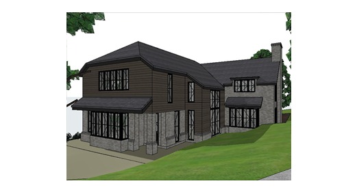 create a hyper realistic visual of this building design make it look classy and realistic and add some planting to make it look stylish the lower level finish is a grey brickwork and the upper level is a dark black timber cladding the windows are a black aluminium frame