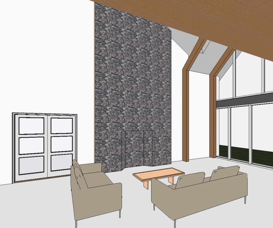 internal render of domestic house oak frame building cosy environment fire place photo like quality