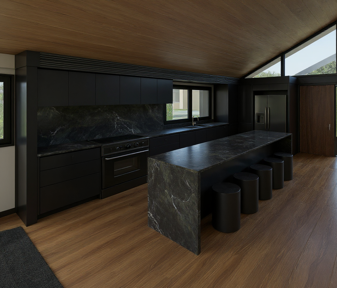 kitchen with no handles make oven and fridge black make air conditioning grills black