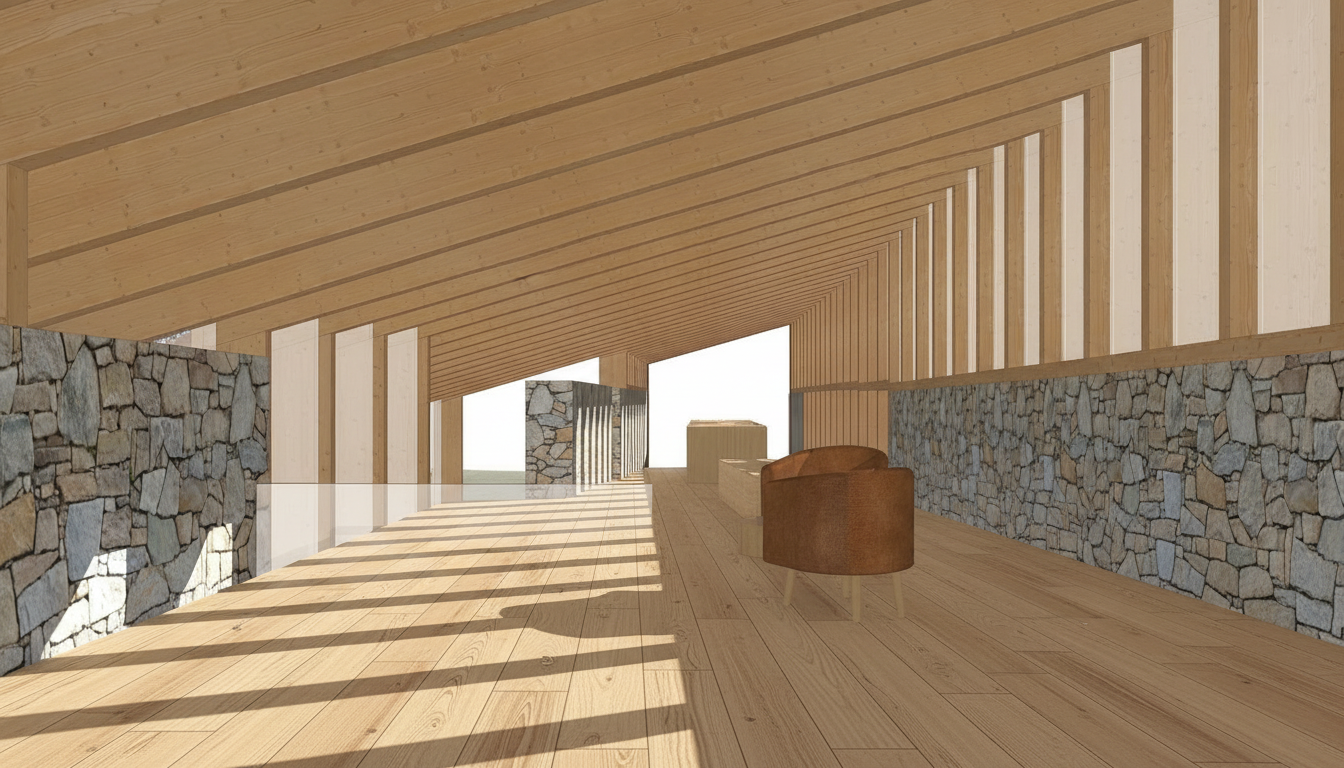 do not change the imagine building anything make the mood vibe materiality the same as the reference images add more texture and richness to materials do not crop the selected imagine add light oak timber floor boards to the floor