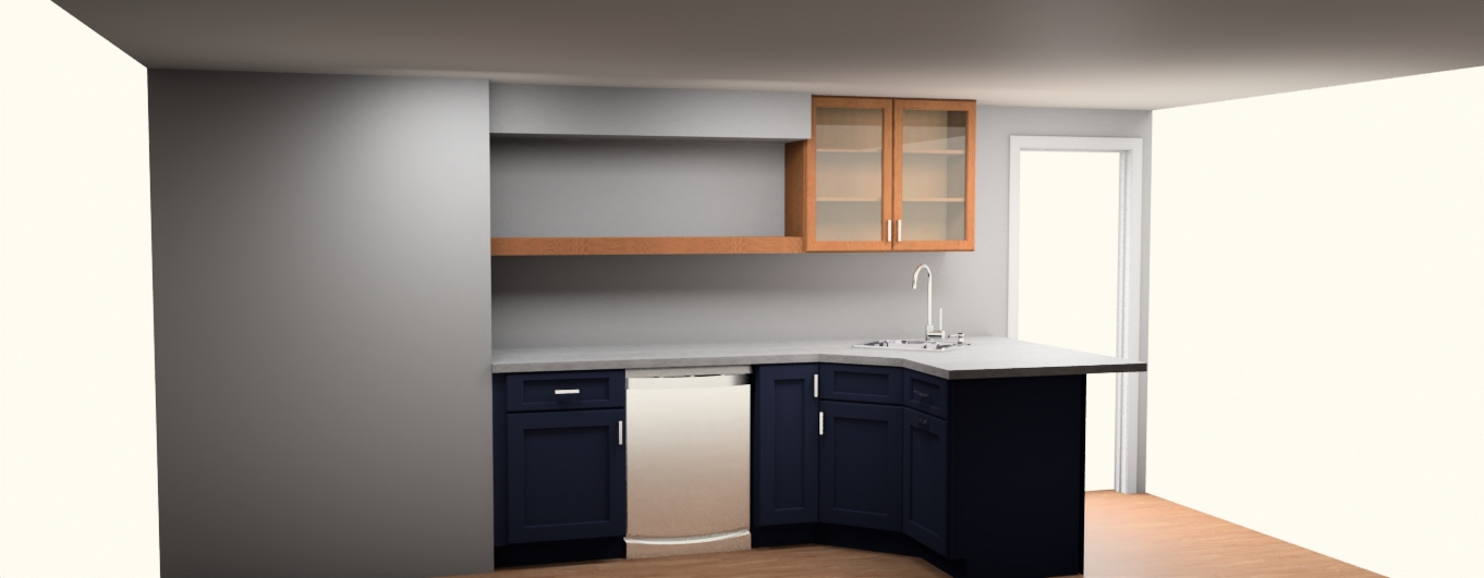 add some liquor bottles to the one shelf