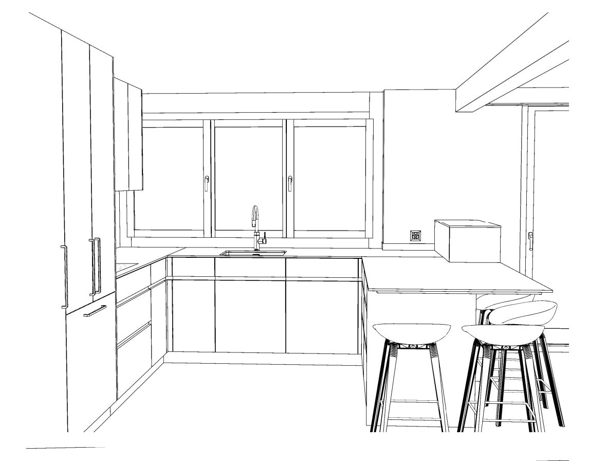 kitchen front in beige boden platten grau abdeckung weiss