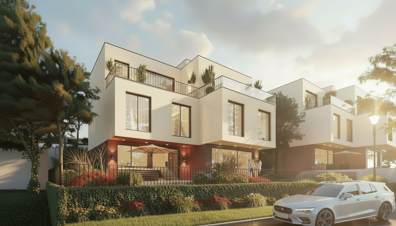 remove the side oak panels from door but keep the door the same as the original photo and keep the brick of the house the same as the original photo and make the grey stones of the walk way a warm ashy grey