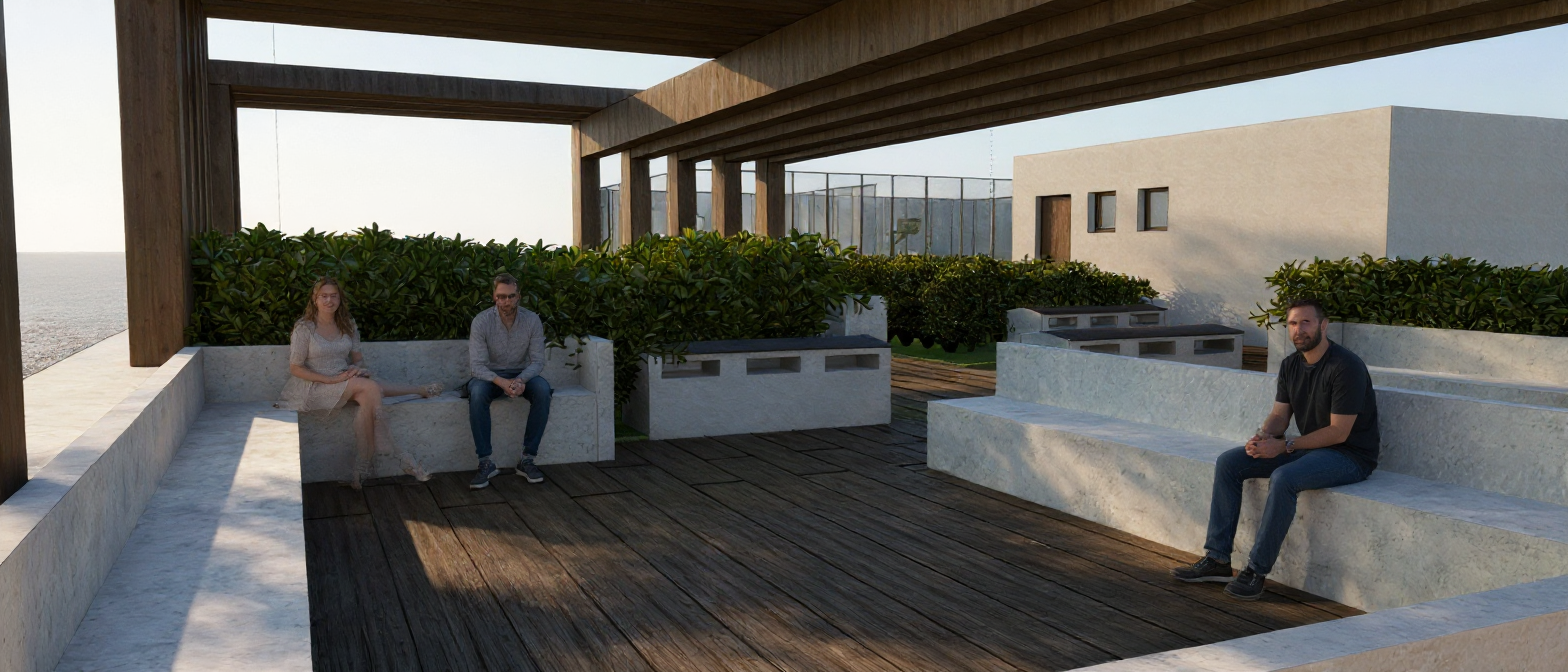 daylight in a charming urban environment bright interior no shade in the foreground sun brightens the front people with children are queuing open pedestrian area warm atmosphere some plants in sight
