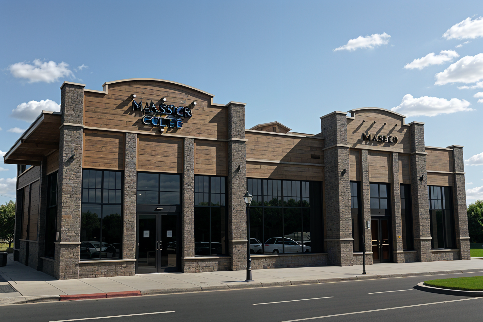 remove green text sign and change the pillar stone color with to black keep wood siding without change