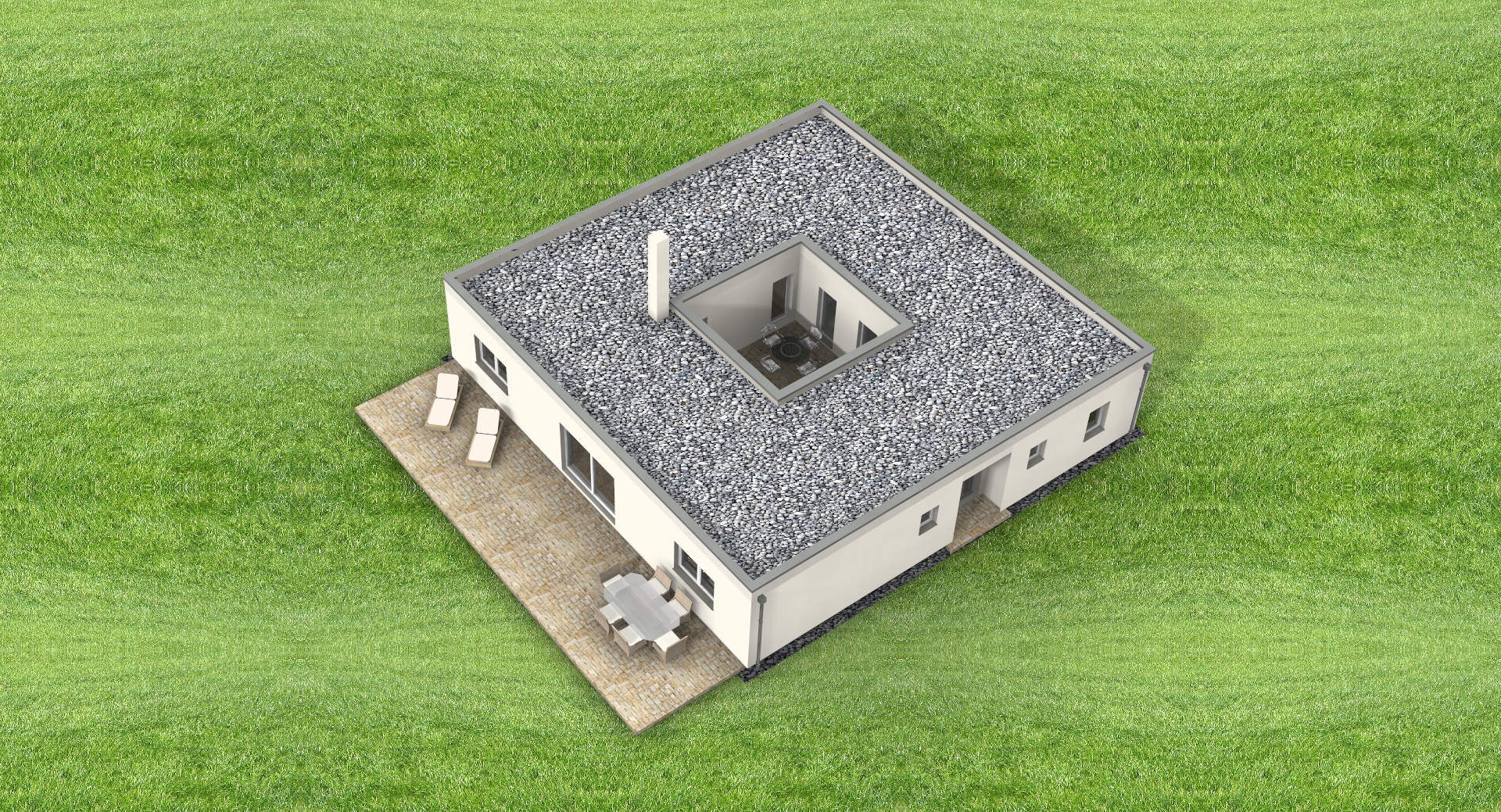 bird perspective create a garden around the house route to the entrance and pool in front of the terrace