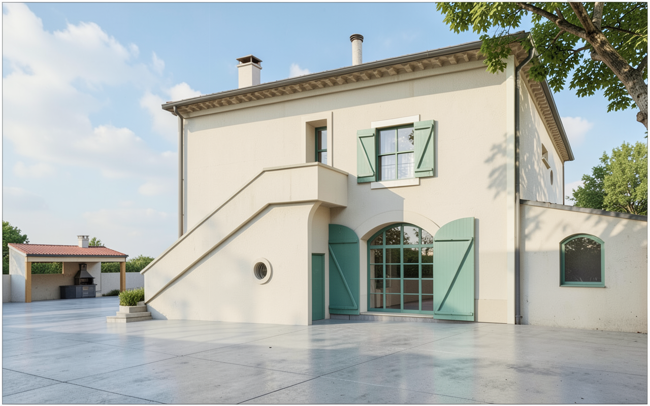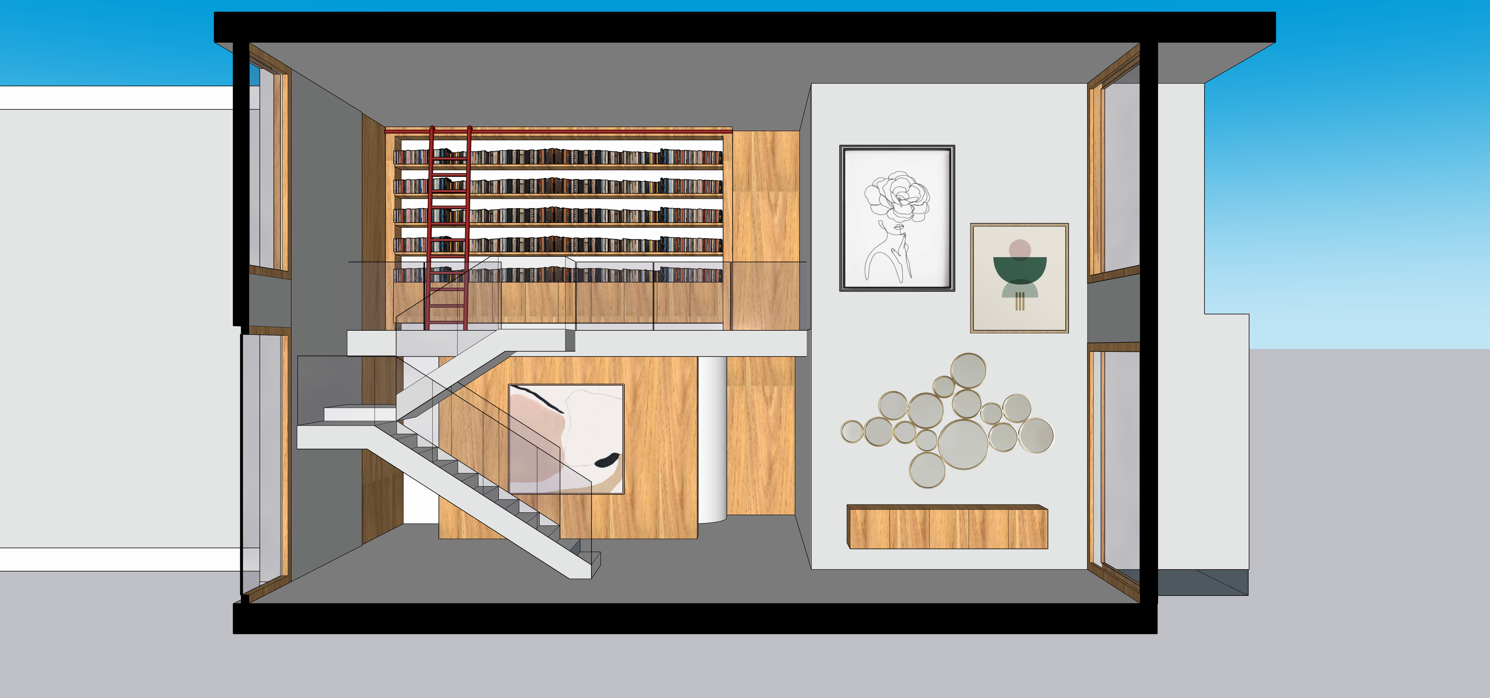 render this image in an architectural style all floor should be in beige natural stone large tiles