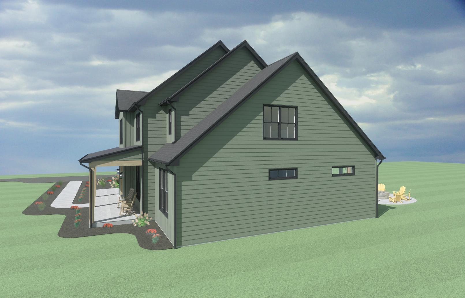 farmhouse in a rural setting with a large yard maintain house colors clean crisp green siding improve the landscaping less landscaping on the right driveway come from the left side