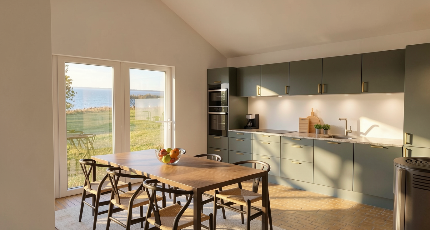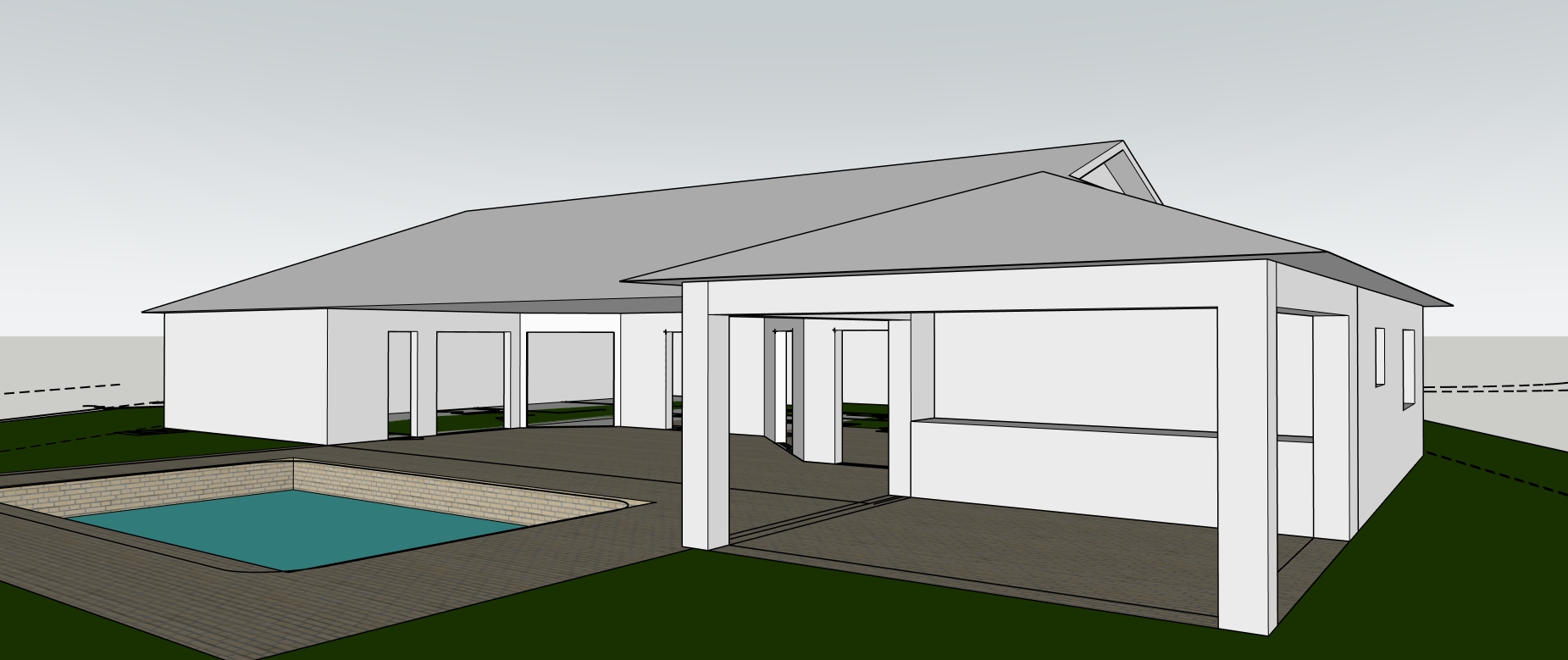 create a hyper realistic exterior photograph of a modern house exterior during a vibrant sunny day the house has white painted walls dark gray metal roof windows reflect the clear blue sky palm trees with their lush green fronds add a tropical touch the house has surrounding green lawn the atmosphere is tranquil and luxurious with sunlight casting gentle shadows evoking a sense of relaxation and opulence