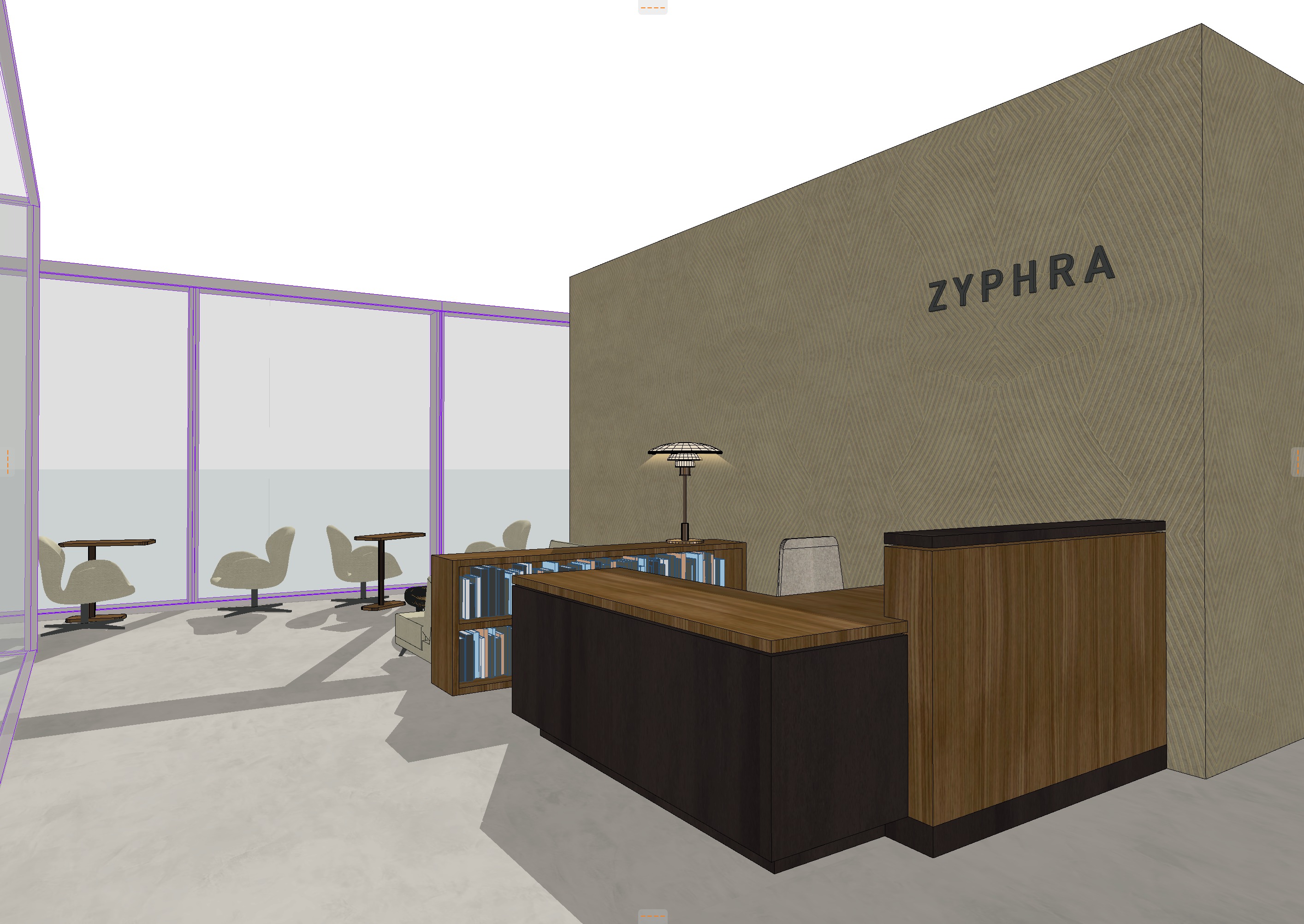 convert this image into a photorealistic rendering within the 44th floor of the salesforce tower in san francisco