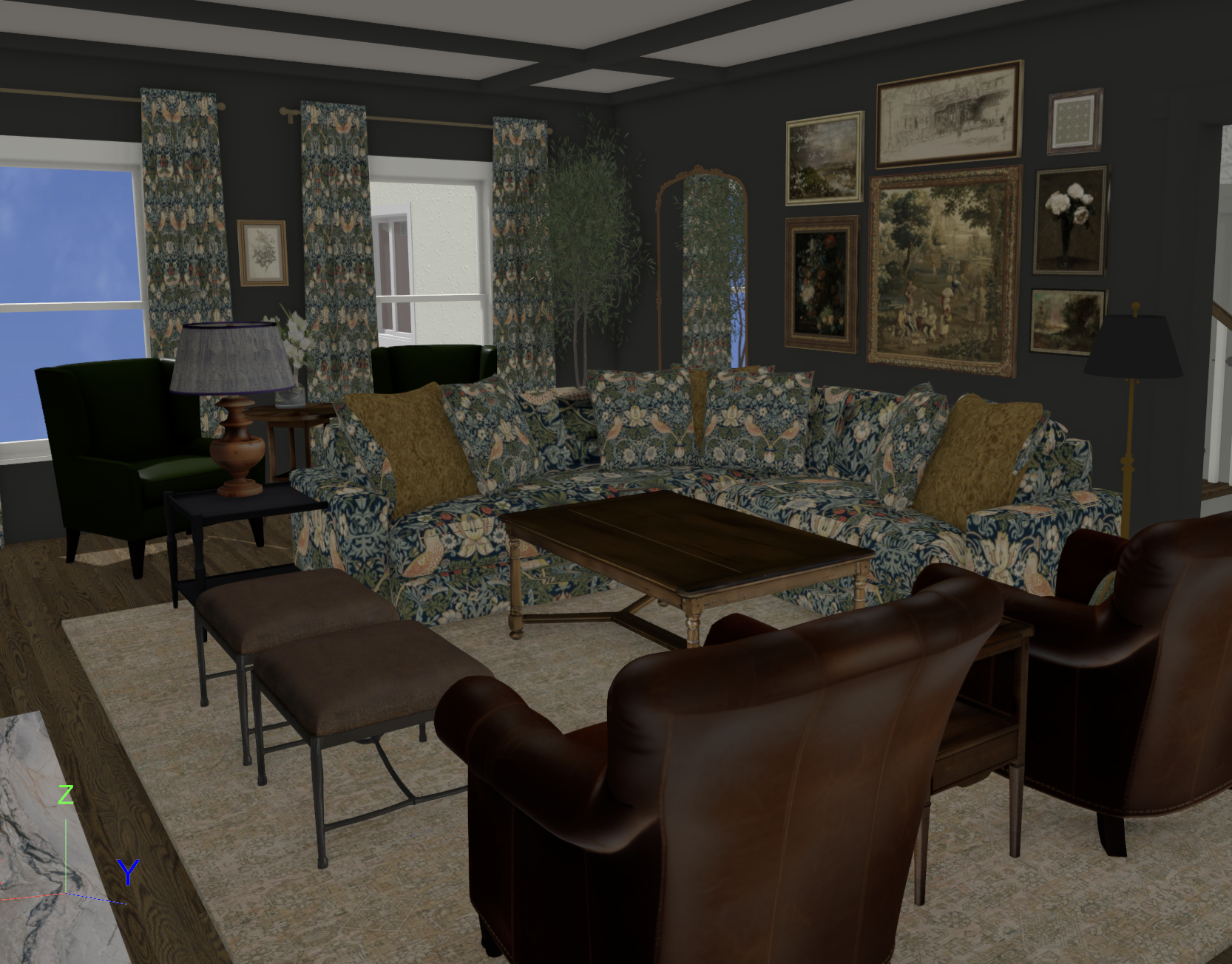 add sunlight with subtle evening glow turn the lamps