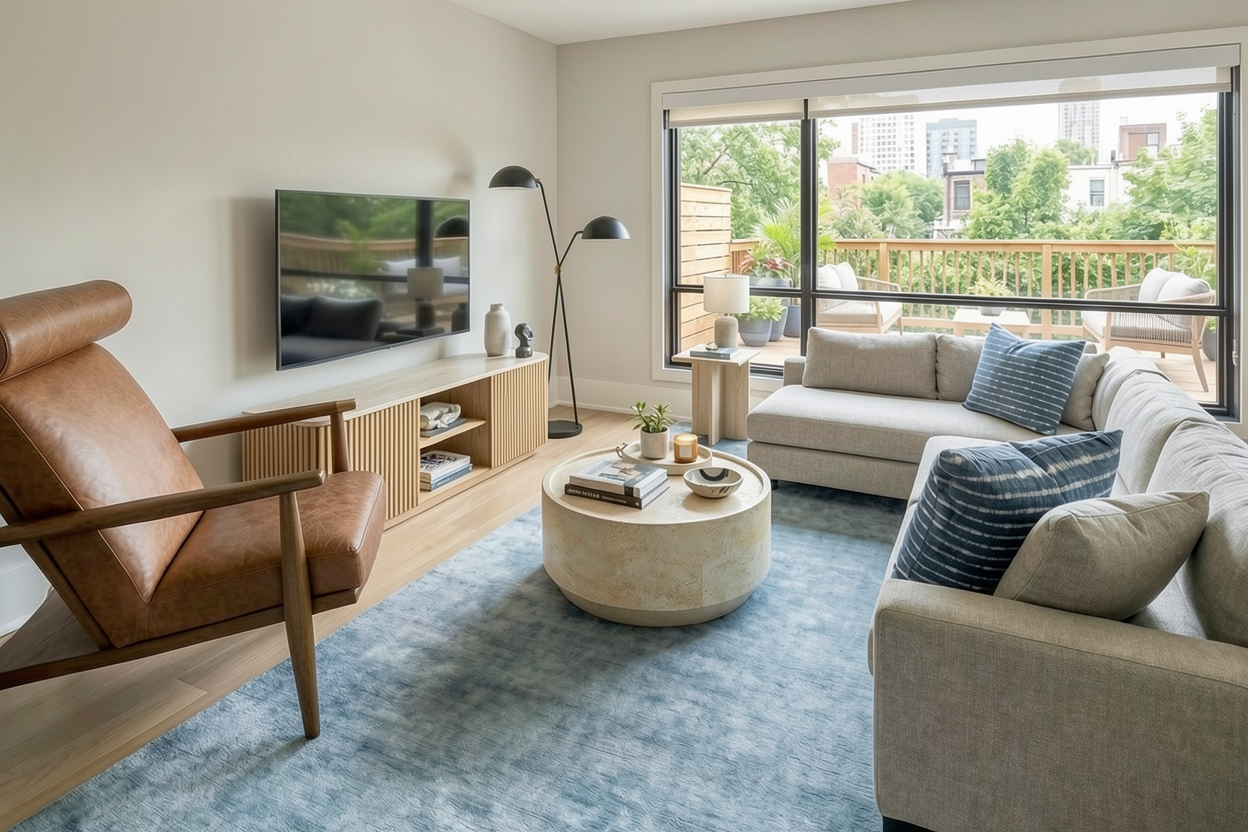 scale the chair on the left to be much smaller do not change anything else