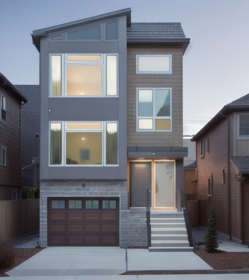 update this rendering by replacing the garage door with the same windows as currently shown on the second and third floor keep everything else the same