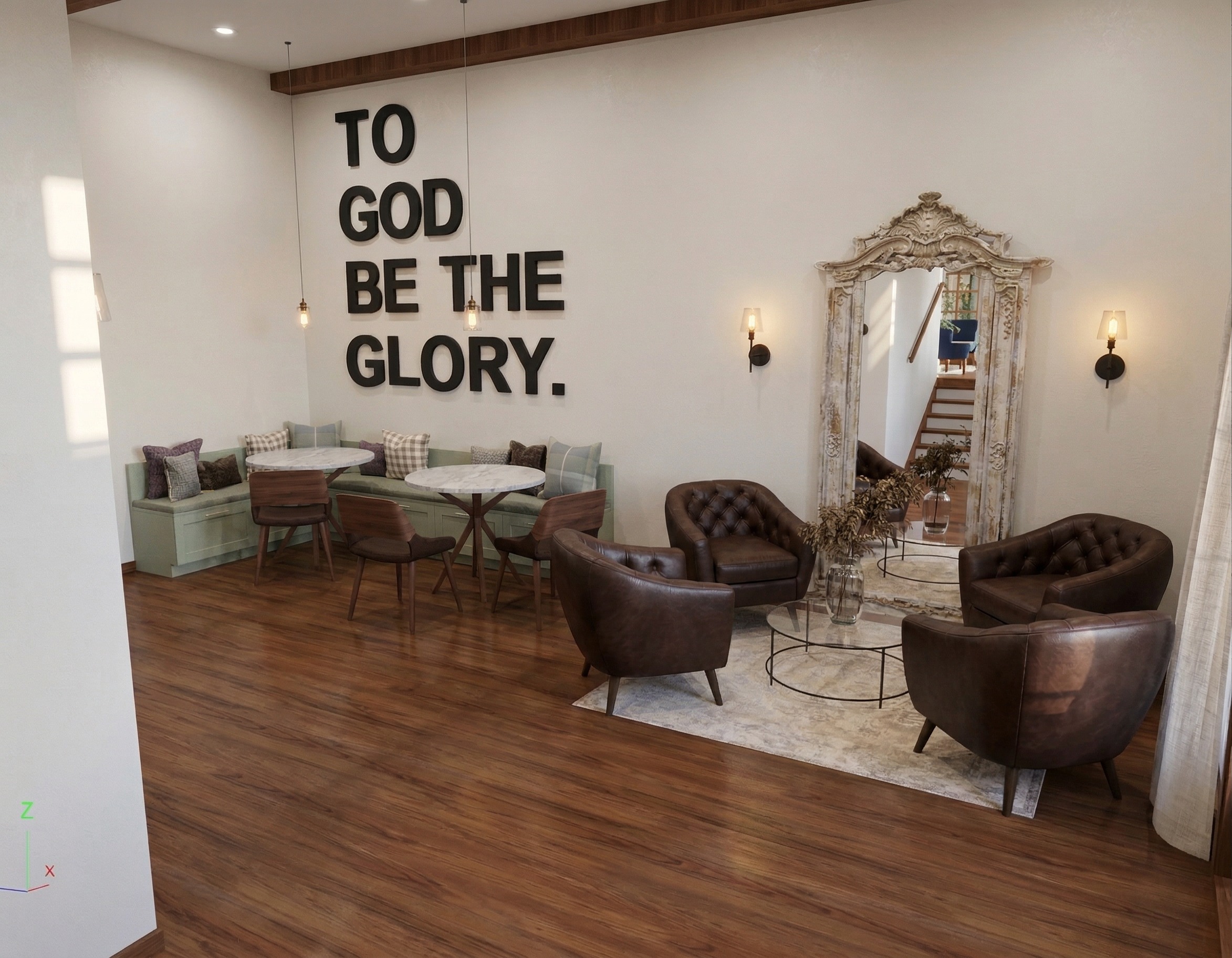 only add churchgoers mingling in this lobby space