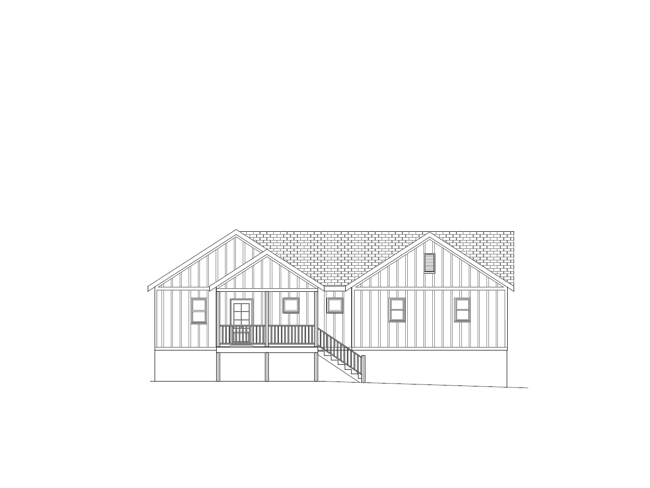 cozy lake house with pale grey siding white trim dark grey shingles driveway on the right grass yard with colorful landscaping