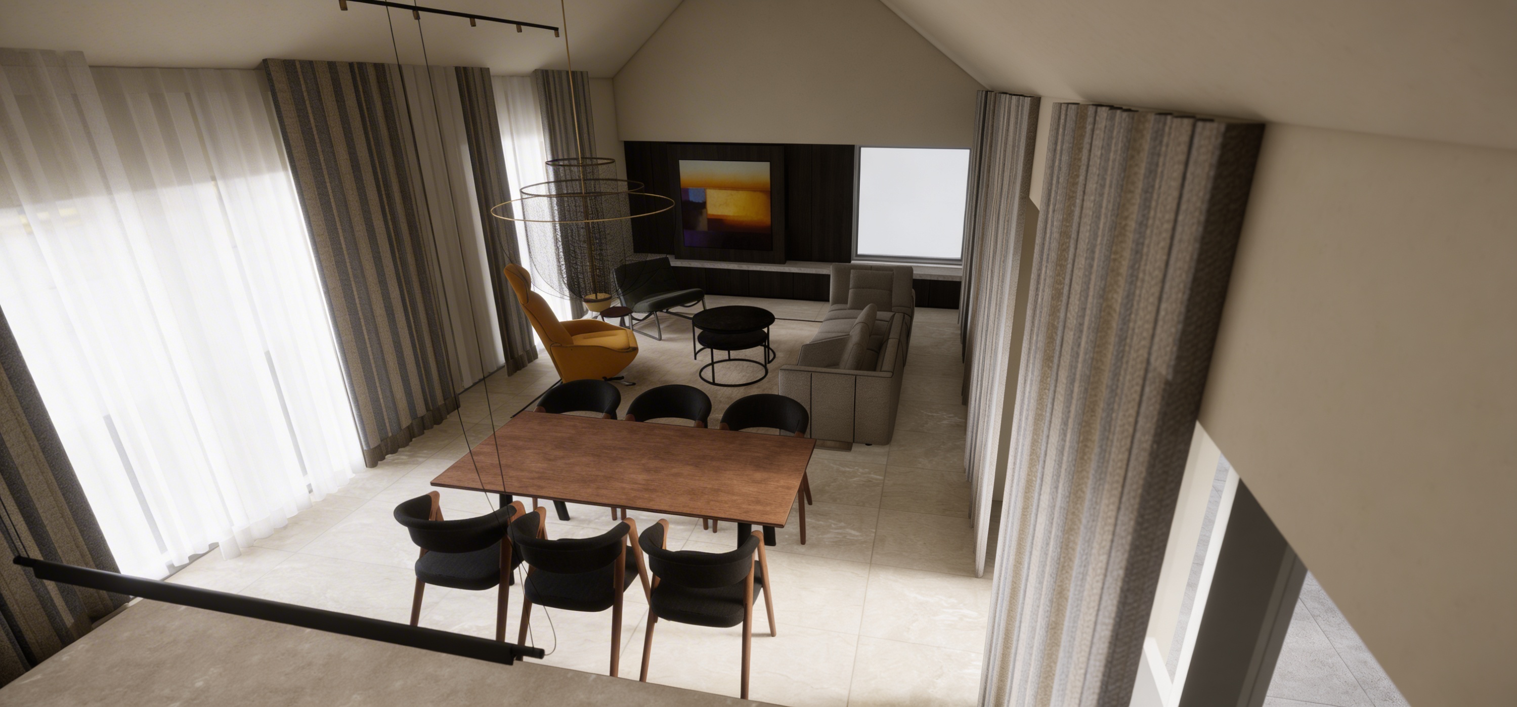 make this photo more realistic don t change any geometry update the herringbone pattern on the cabinetry to fluted door fronts in a medium grain use a grey steel faucet update the range to stainless steal add a 6 feet x3 feet island with fluted wood and waterfall countertop plus 3 skylights above it update the countertop and backsplash halfway up the wall to a white and gray ceasarstone use a warm grey color from benjamin moore for the rest of the walls add in a refridgerator to the west wall at the end of the counter run on the south side make the 3 square skylights above the island 1 foot on each side add 3 minimalist counter stools in tan leather and charcoal black metal legs that have a curved back add in a roman shade over the window in an black and white mainly black small medium geometric pattern add a hapa teenage boy with black hair and brown skin doing his homework at the island wearing sweats and a blue teeshirt with his back to us add a fruit bowl in a large black clay bowl to the island have the cabinets run to the end of each wall make the back door a raise panel door in swiss coffee from benjamin moore add a white cast iron pot to the stove add bright orange and yellow and black japanese inspired dish towels near the sink add a japandi vibe to the scene add a black and white doormat in front of the back door that has an abstract botanical japanese pattern on it make the hood a white color paint the ceiling the same color as the walls add a cute small japanese dog on a nice flat woven black and white runner rug in between the island and the sink