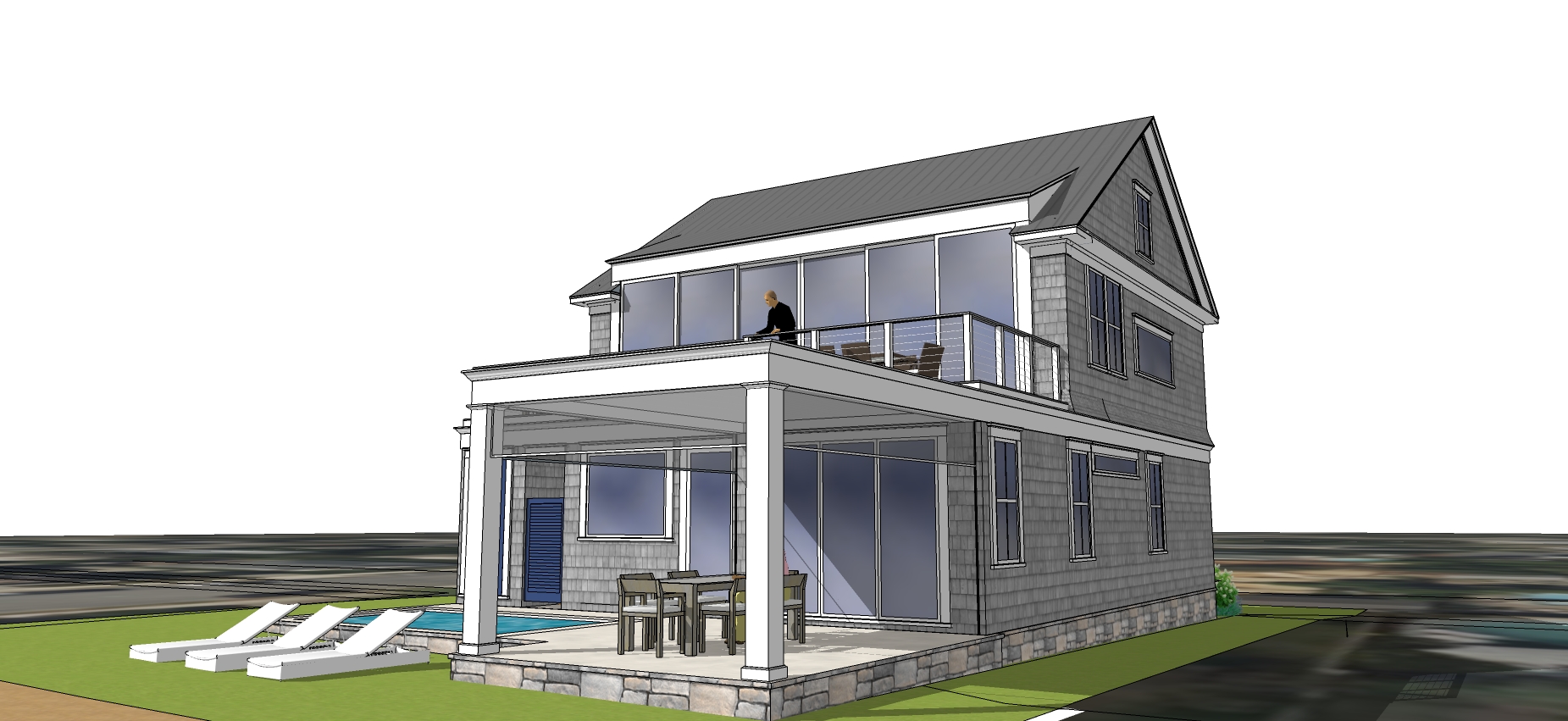 this is a beach house make it photorealistic don t show the ocean in the background show sand and grasses have the natural lighting be a little before sunset