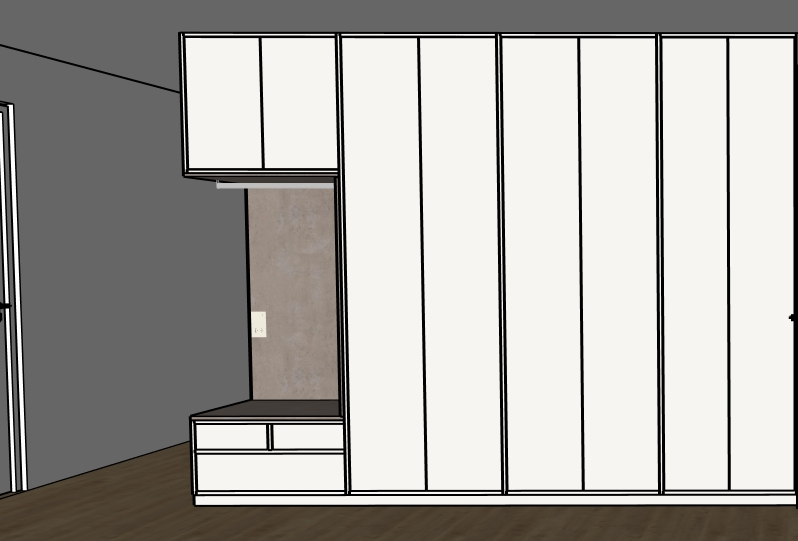 movel de corredo branco com detalhe interno na cor taupe paredes brancas casaco pendurado no movel tras uma ideia de praticidade desse movel