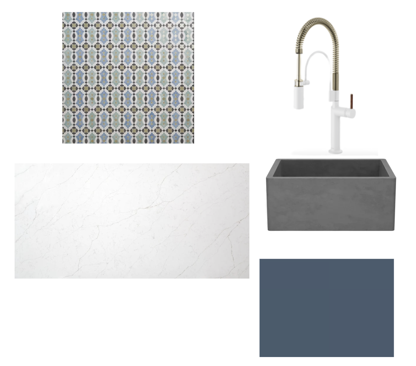 interior shot tile backsplash needs to match first image on the mood board dark blue cabinet color tv in the middle