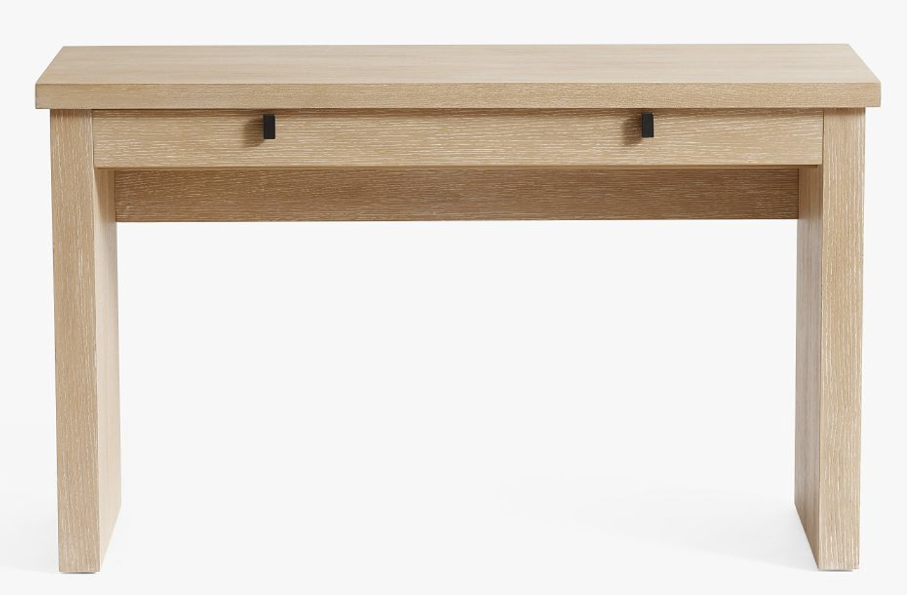 i want to see two of these desks sitting side by side edge to edge and styled with two laptops and other desk related items the reference image shows the desk nested with a bookshelf but i need just two of the desks next remove the background and set it against just white