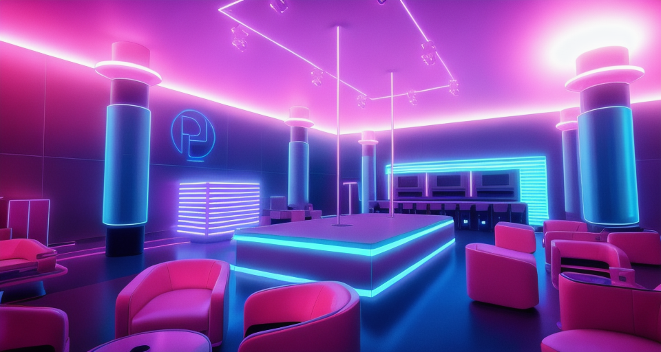 futurism interior shot add a laser light show coming from the ceiling architecture