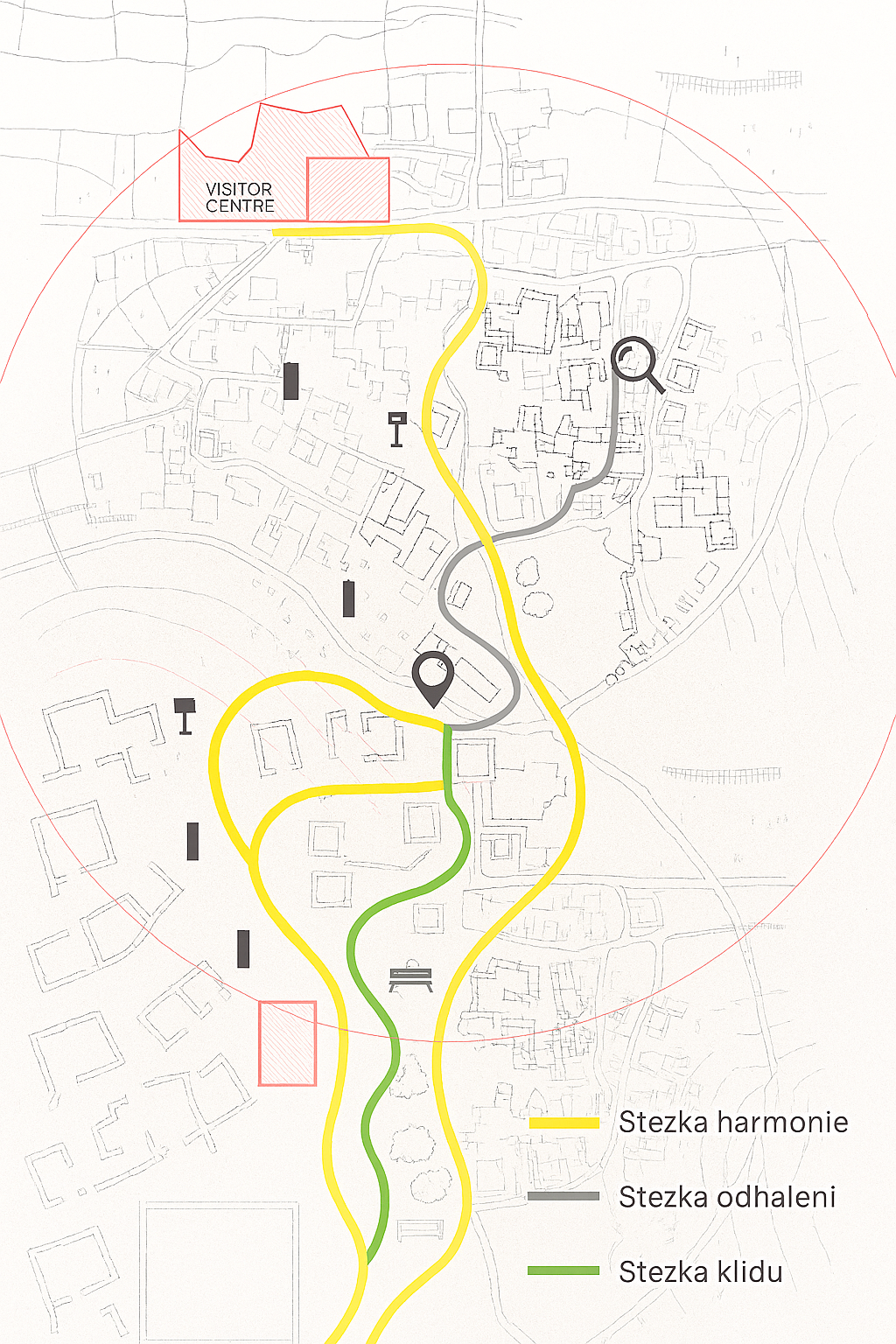 sustainable design aerial shot top view of citsy of dereci the lines incline to be touristic paths with stops with benches and info and little shelters architecture