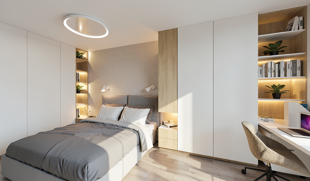 add kindergarten class children in blue and red uniforms with teachers add learning activites on walls add classroom furniture