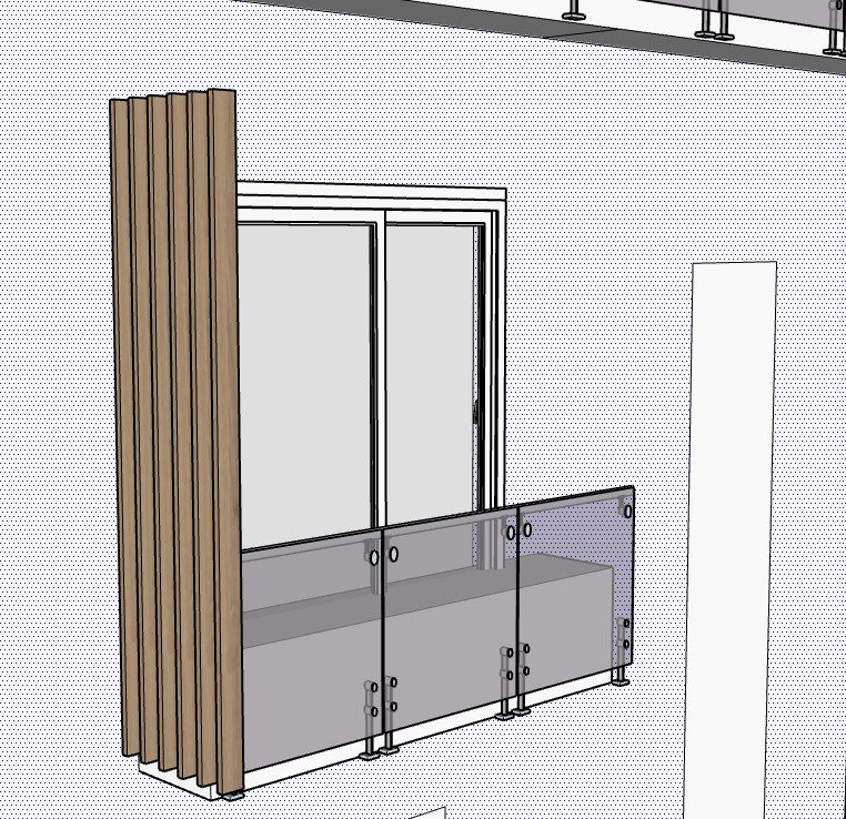 ultra realistic architectural render of the provided sketchup balcony detail this is an image to image enhancement strictly preserve the exact camera angle composition geometry and proportions do not change viewpoint or design material definition must follow model exactly main facade smooth painted masonry rendered plaster in a warm sand beige tone feature elements travertine stone detail light beige subtle horizontal veining honed matte finish balcony design railing clear glass panels with minimal metal fixings high transparency with realistic reflections and light distortion side privacy screen vertical wood slats or wood look aluminium warm natural wood tone slim evenly spaced slats clean modern not bulky apertures important window frames in crisp white sharp clean contemporary finish material realism smooth plaster with very subtle fine grain travertine with soft natural variation not rough wood with realistic grain and slight tonal variation glass with reflections and slight transparency tint lighting soft natural daylight realistic shadows and depth subtle ambient occlusion around joints and edges background simple soft urban context or blurred surroundings not distracting from the balcony detail rendering style high end photorealistic architectural visualization clean minimal premium finish strict constraints no redesign of elements no change in materials beyond those specified no heavy texture no aging no dirt important treat this as a material and realism enhancement of the exact same detail