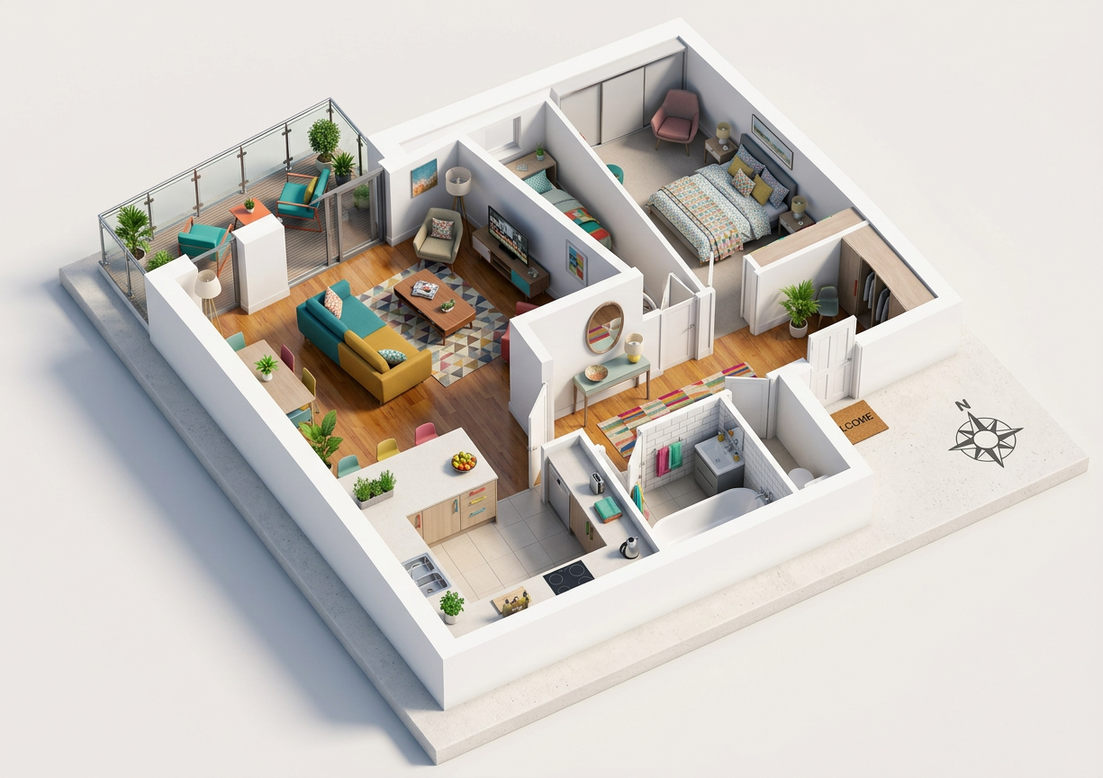 black framed windows contemporary style stucco with modern accents add some mature trees in the background add a walkway to the steps add a driveway to the garage door give the building a modern limestone look add some ornaments add more limestone detail to the building make it early afternoon with a nice sky only make the windows rail and light fixtures look black keep the building and the roof caps a light color also show the brick as noted in a modern darkish black grey tone to fit the theme make the window and door framed in black make the awning above the door black as well make the window trim dark make the flat roof caps light in color