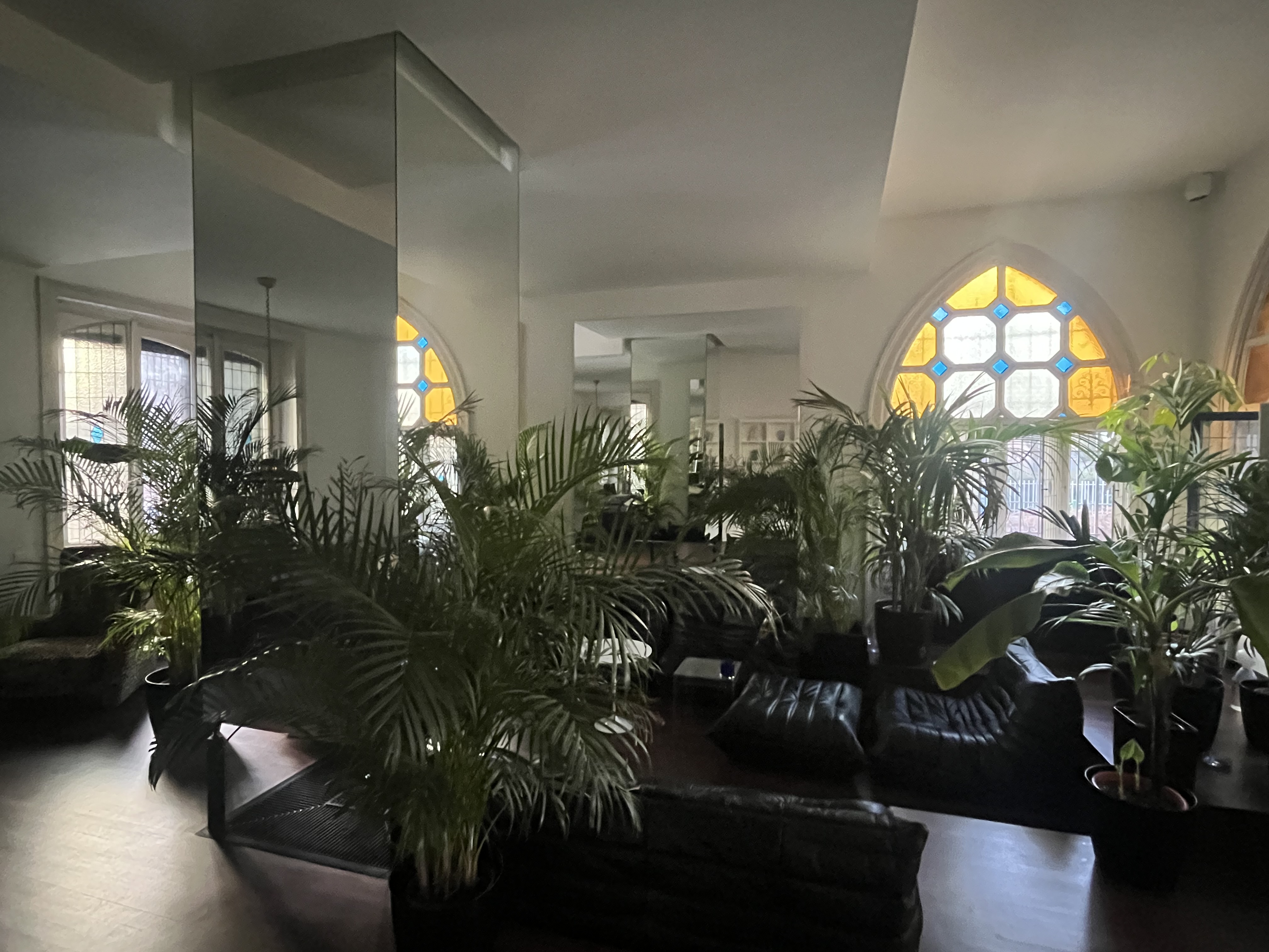 make a crazy ceiling with pensant lights bars and crazy feometrical shapes of acoustic insulation made of wood