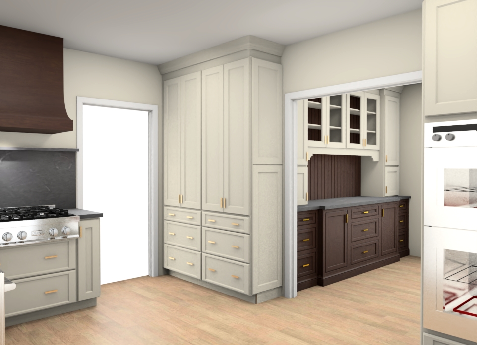 alabaster cabinets with black soapstone alabaster walls walnut accents light oak flooring do not alter the cabinet layout old english style kitchen magazine look image sunlight streaming through window
