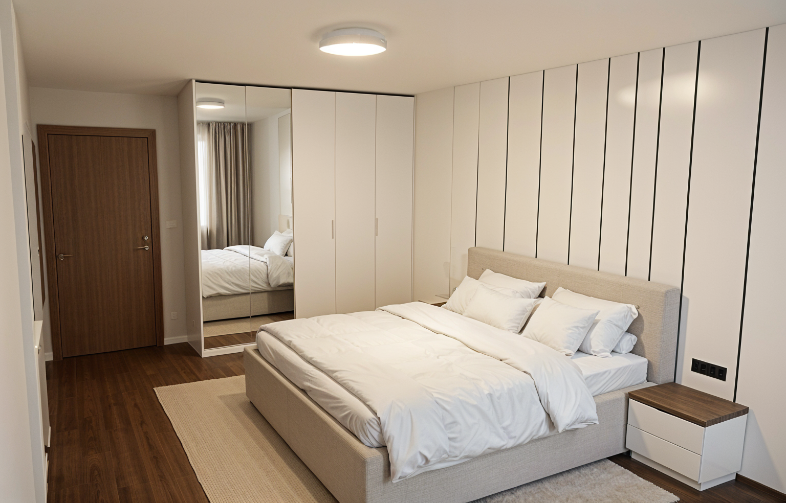 modern traditional kitchen calacatta countertops walnut and beige inset cabinetry