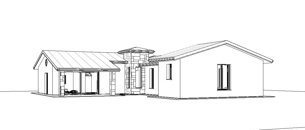 fai esterni moderni attenendoti esattamente alla vista di progetto con intonaci color tortora chiaro infissi color avorio moderni pavimentazioni esterne in porfido a lastre colori delle terre lattonerie in rame e copertura in coppi di laterizio tipo invecchiati oltre ad un giardino in aderenza al corpo di fabbrica di destra con aiuole disegnate con linee geometriche regolari e minimal con piante basse e grasse ma molto scenografiche considerare di stare massimo a 4 metri dal filo esterno della casa con le aiuole aggiungi nella parete sotto la loggia un rivestimento in lastre di pietra a strisce di cm 10 circa di altezza con posa a correre di colore avorio con texture omogenea anche la pietra della torretta di color avorio nel giardino oltra alle aiuole tutto il resto a prato aggiungi qualche ulivo