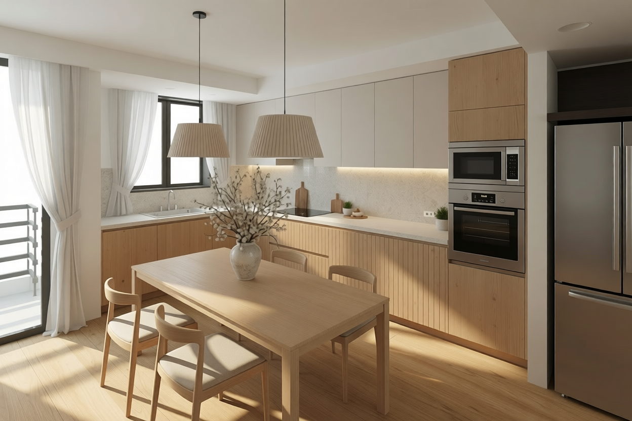 move the tower with oven and microwave a little to the left and put a narrow fridge next to it