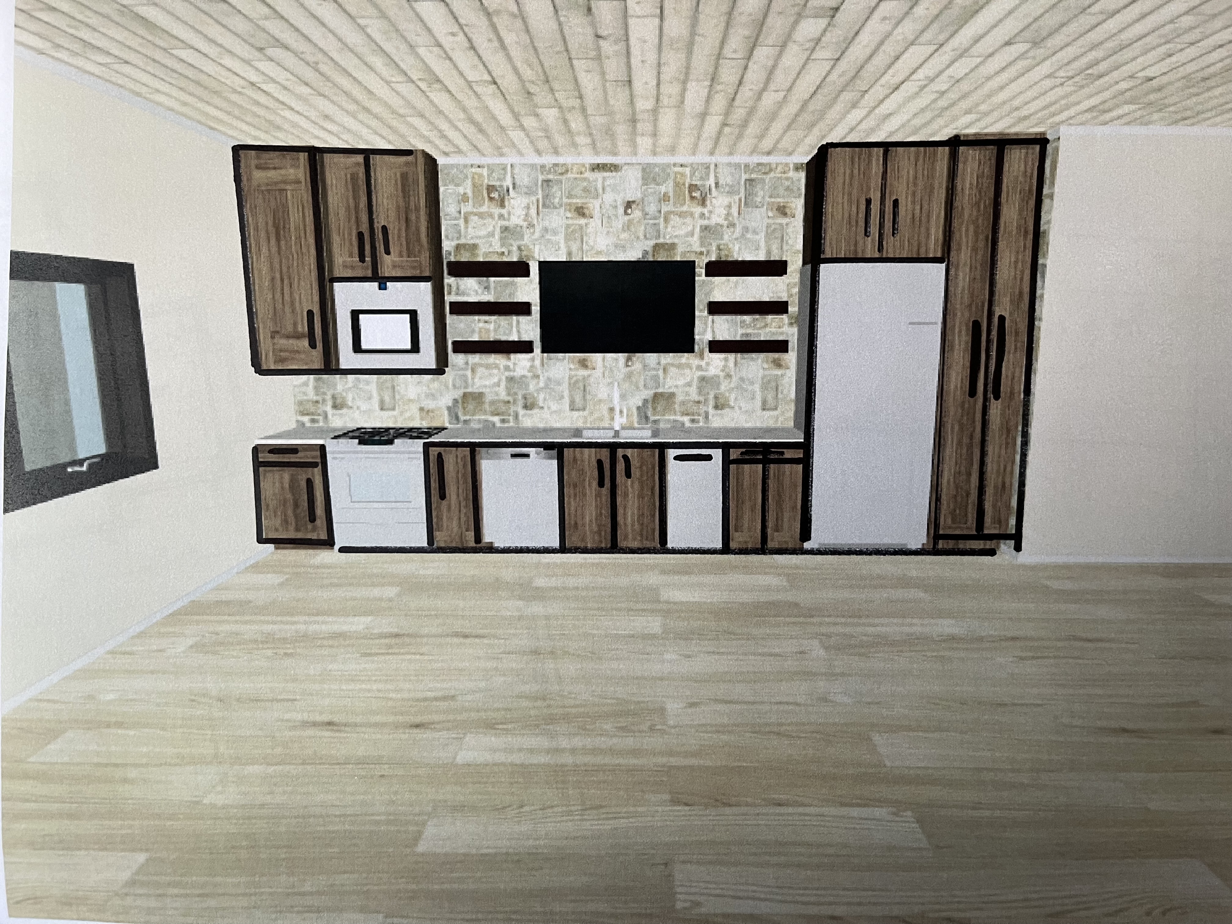 create a 3 d image of this render keep the layout exactly as is and the style is rustic architecture