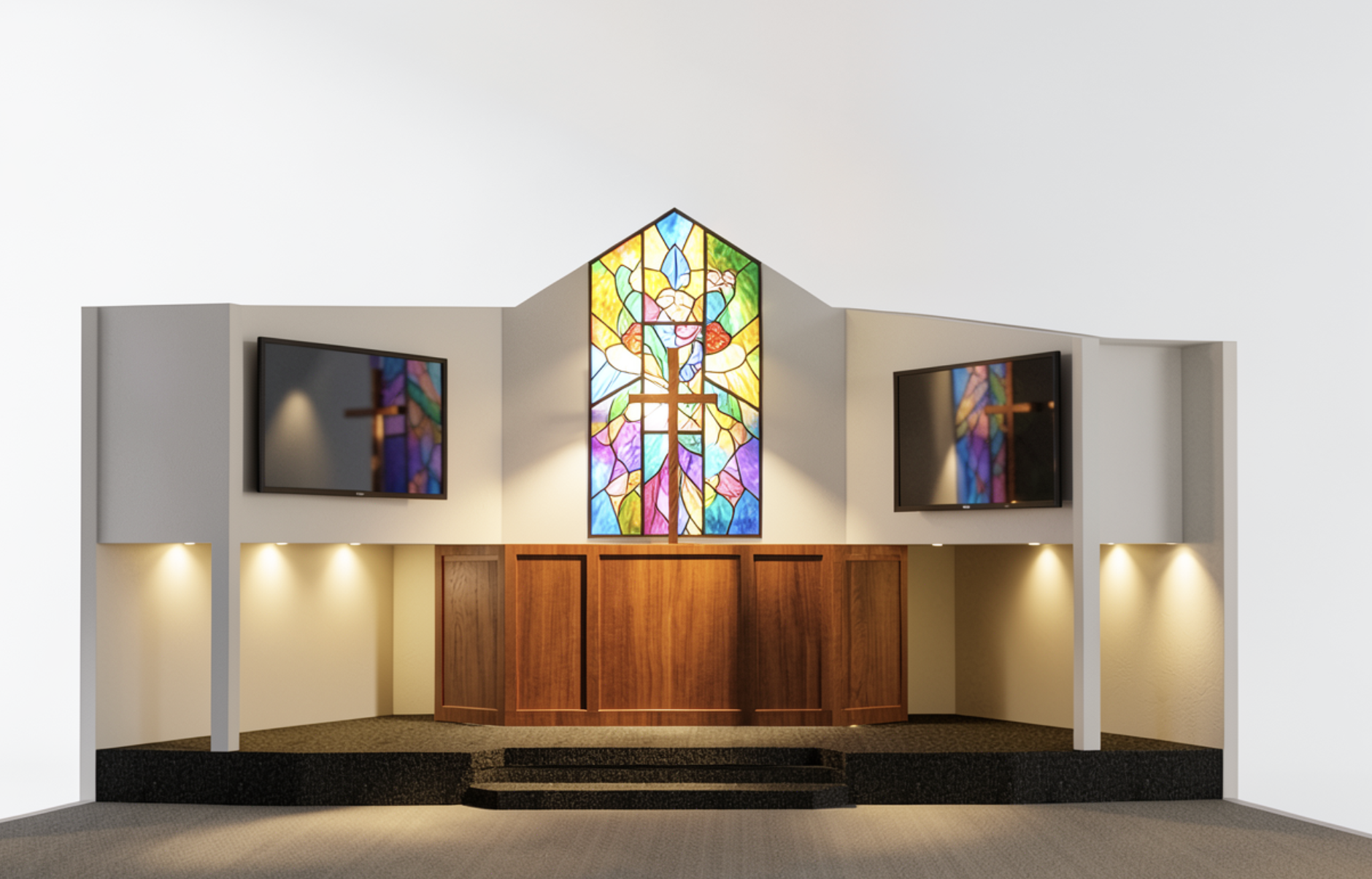 the ceilong shuld be vaulted like the down lights should be warm white
