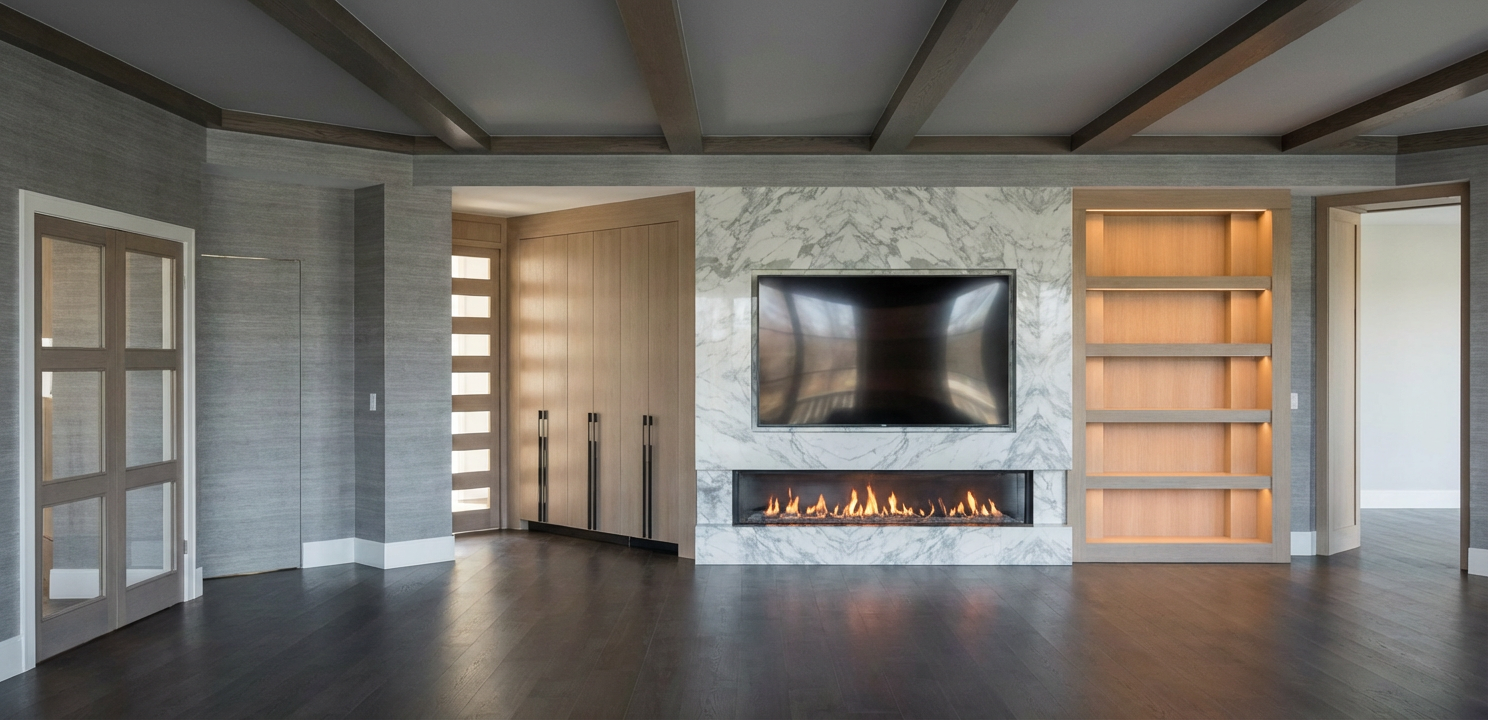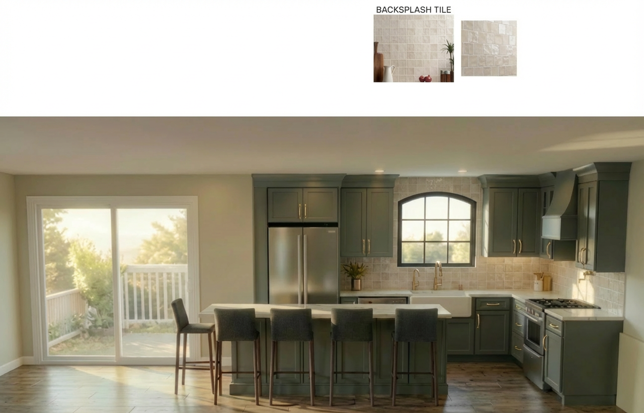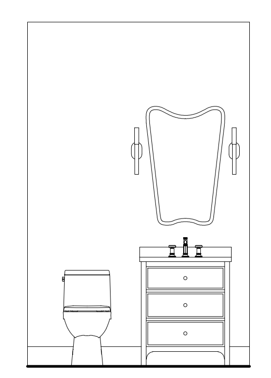 create a 3d elevation of this powder room using the materials in the reference image
