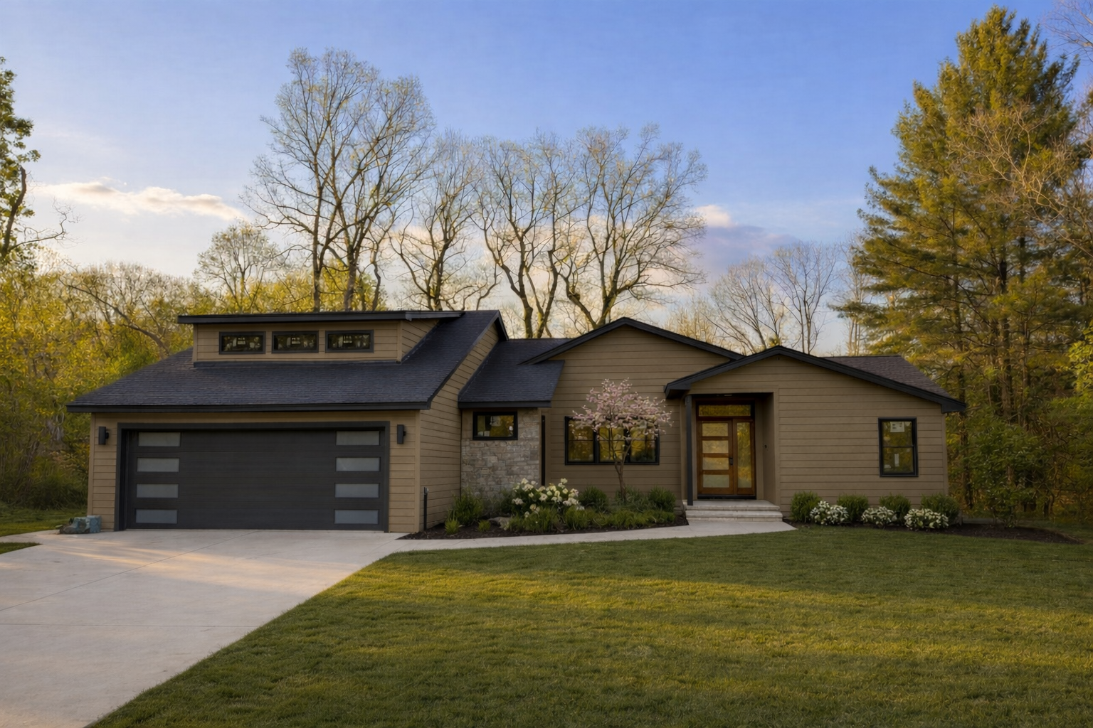 giuseppe terragni exterior shot add small free standing stone seat wall on left side to give some modern landscape element to front entry architecture